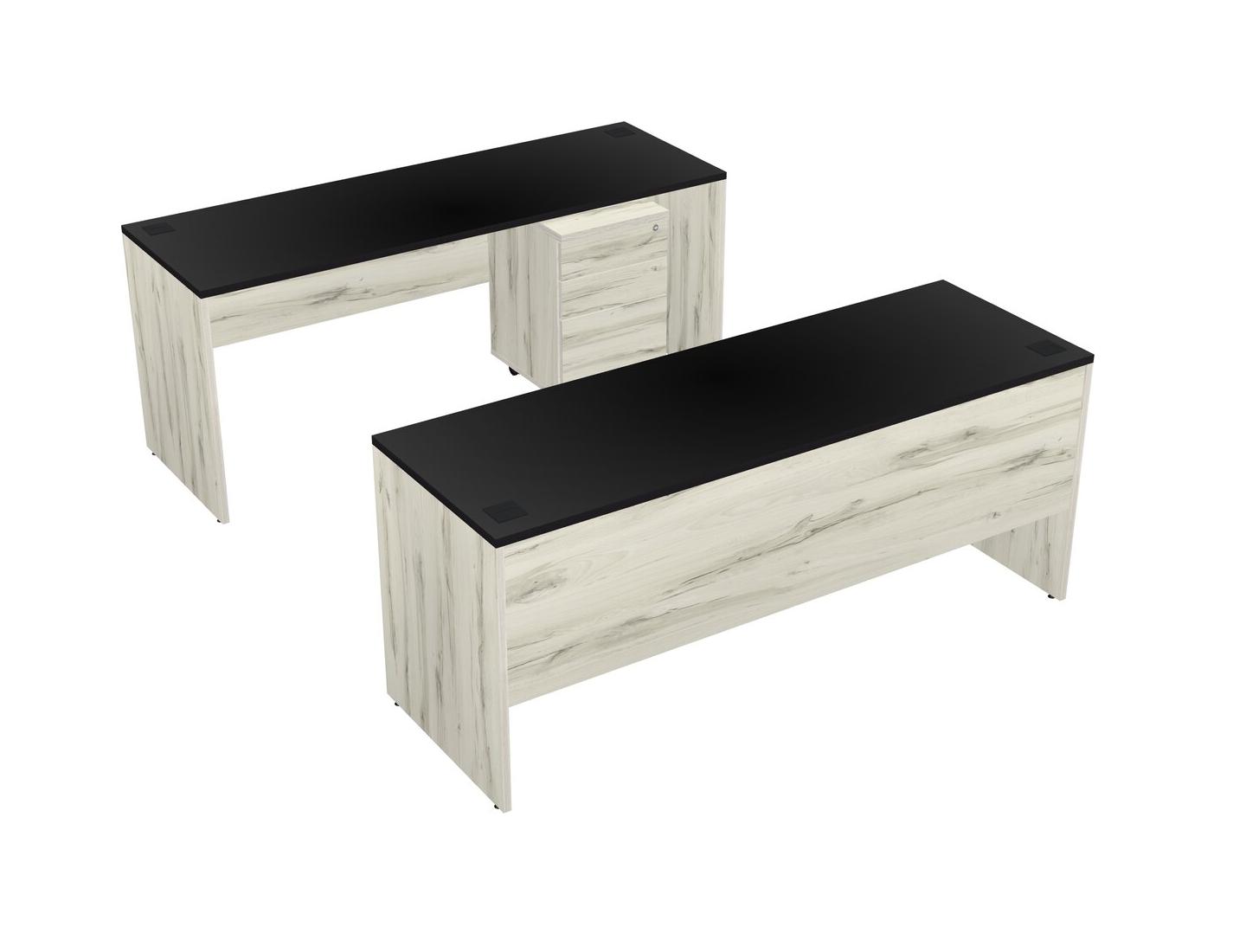 Office Parallel Desk Credenza Desk + Wooden Mobile Drawers