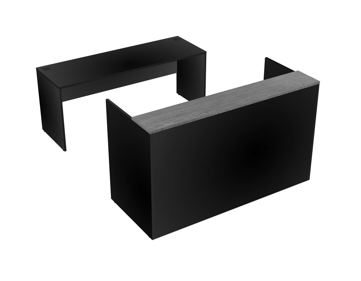Grey Modular Reception Desk + Wooden Mobile Drawers + Credenza Desk