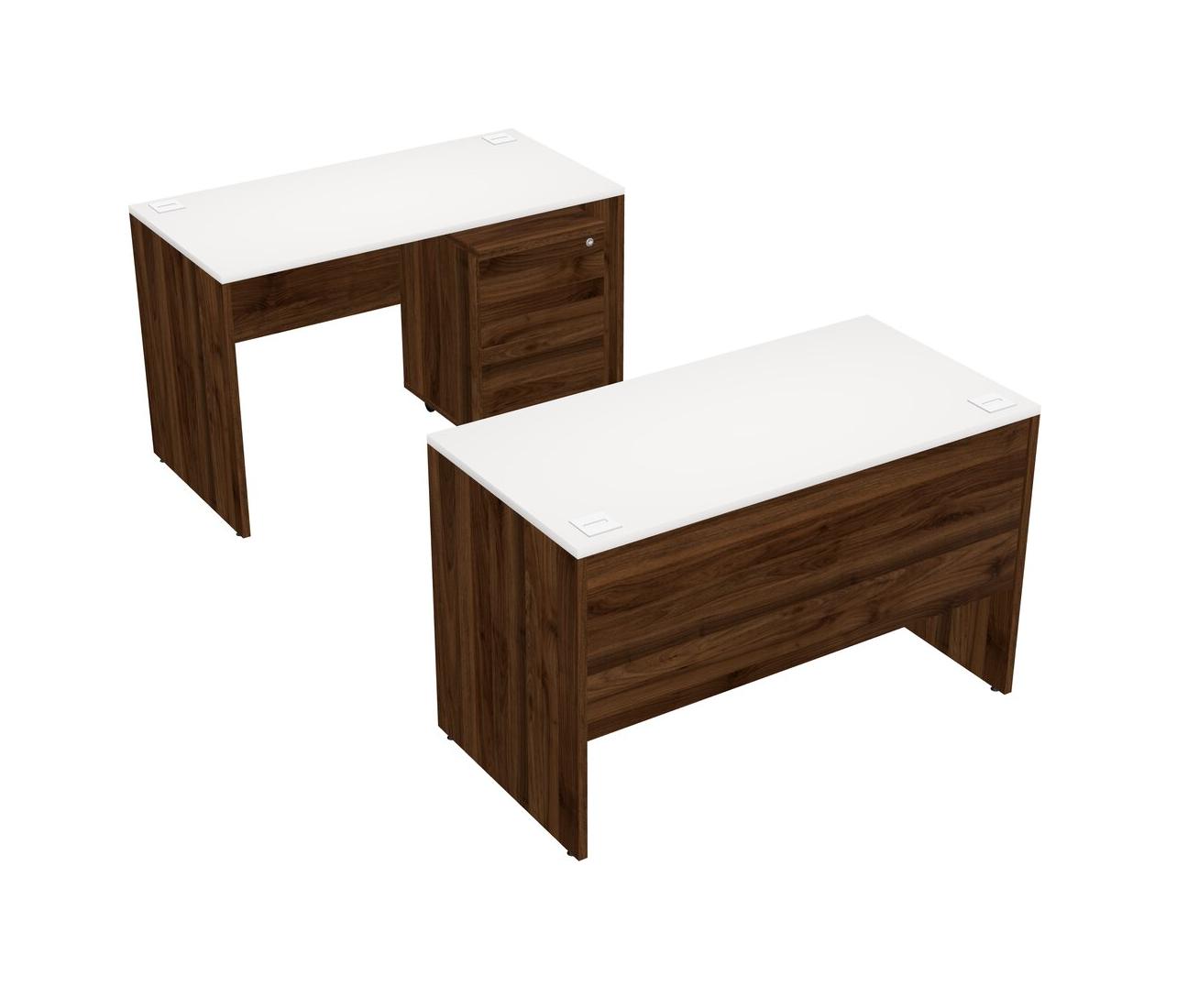 Office Parallel Desk Credenza Desk + Wooden Mobile Drawers
