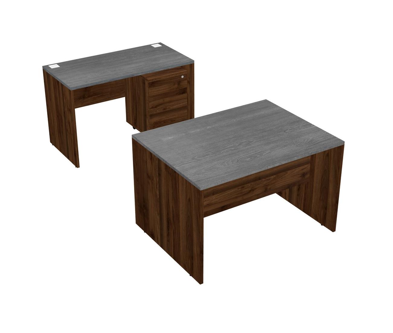 Office Parallel Desk Credenza Desk + Wooden Mobile Drawers