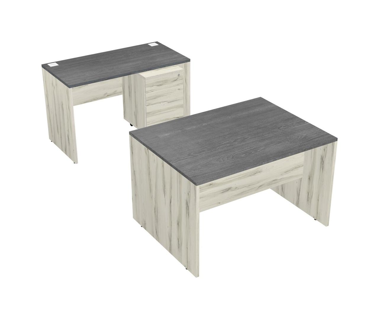 Office Parallel Desk Credenza Desk + Wooden Mobile Drawers