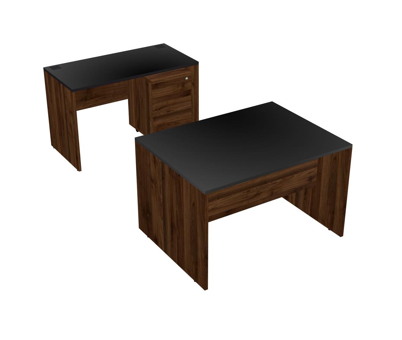 Office Parallel Desk Credenza Desk + Wooden Mobile Drawers