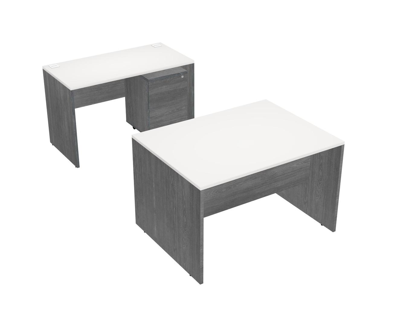 Office Parallel Desk Credenza Desk + Wooden Mobile Drawers