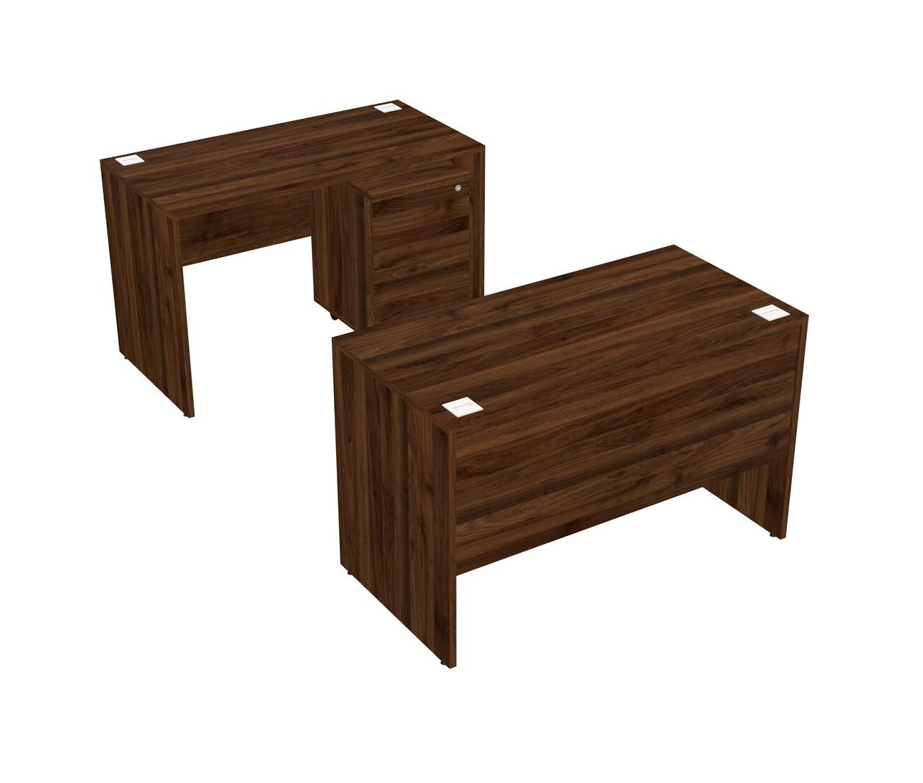Office Parallel Desk Credenza Desk + Wooden Mobile Drawers