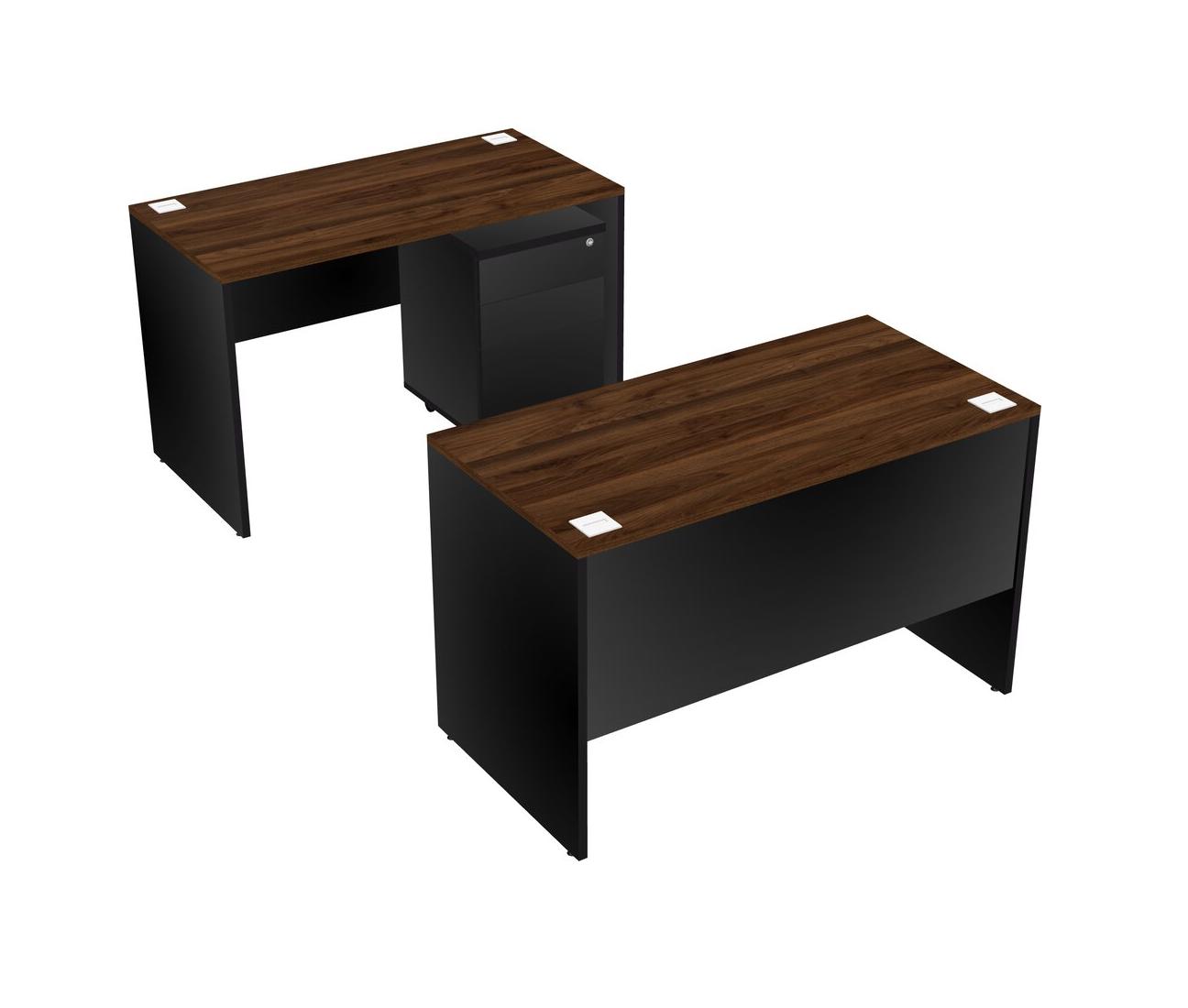Office Parallel Desk Credenza Desk + Wooden Mobile Drawers