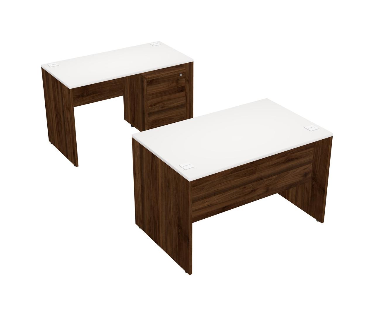 Office Parallel Desk Credenza Desk + Wooden Mobile Drawers