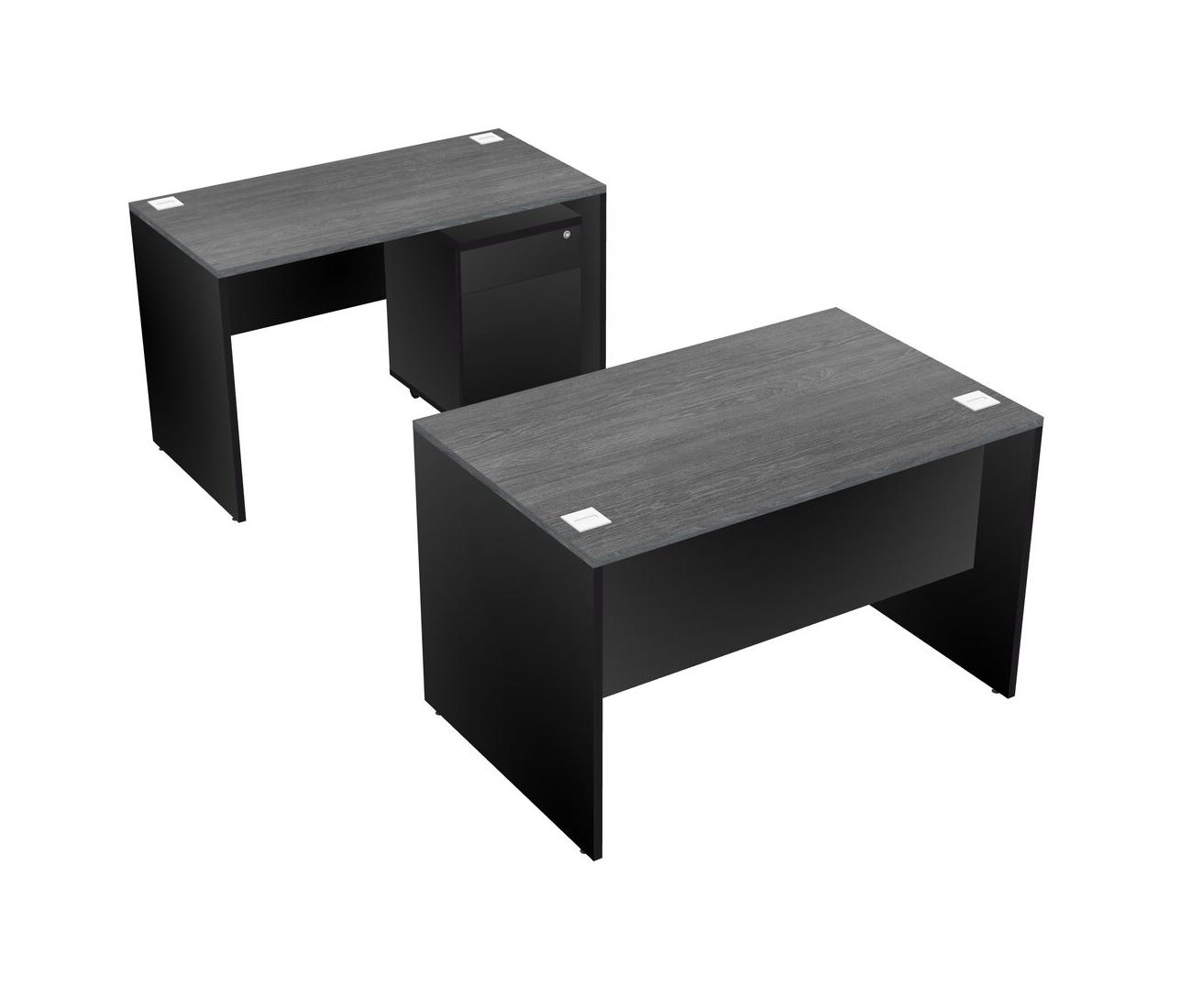 Office Parallel Desk Credenza Desk + Wooden Mobile Drawers