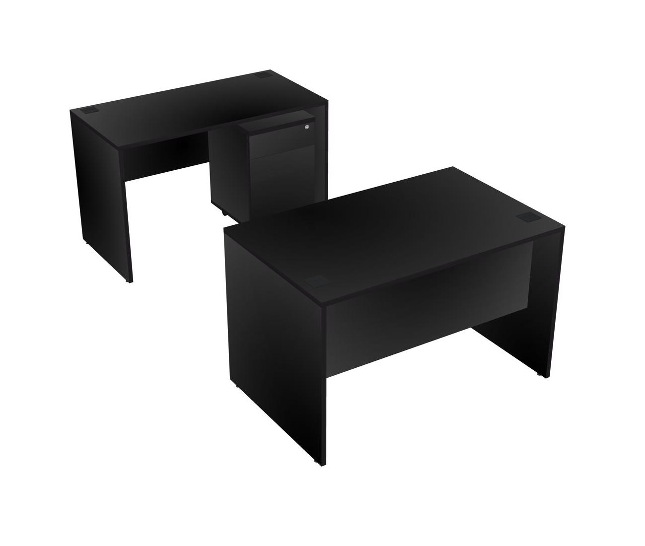 Office Parallel Desk Credenza Desk + Wooden Mobile Drawers