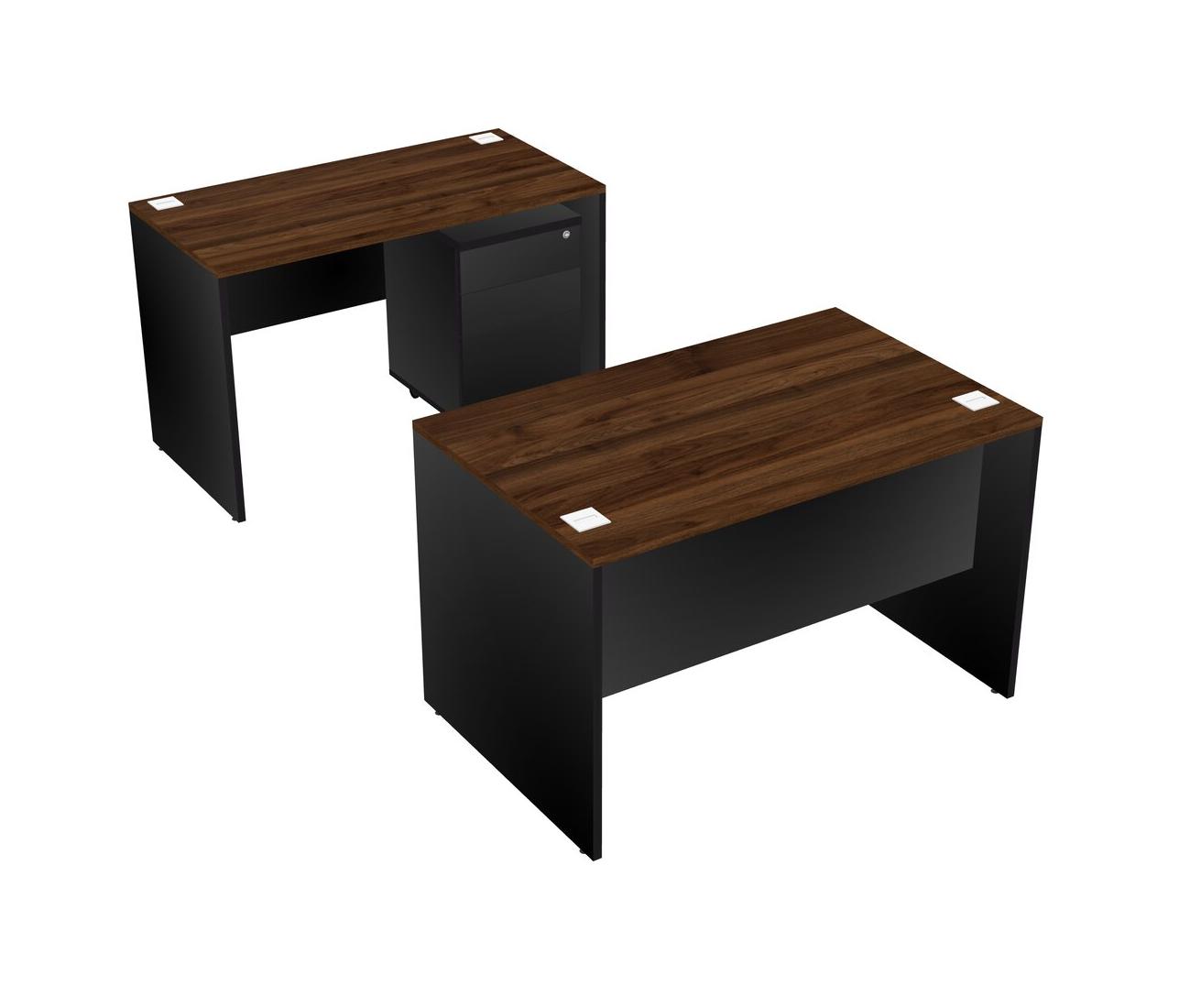 Office Parallel Desk Credenza Desk + Wooden Mobile Drawers