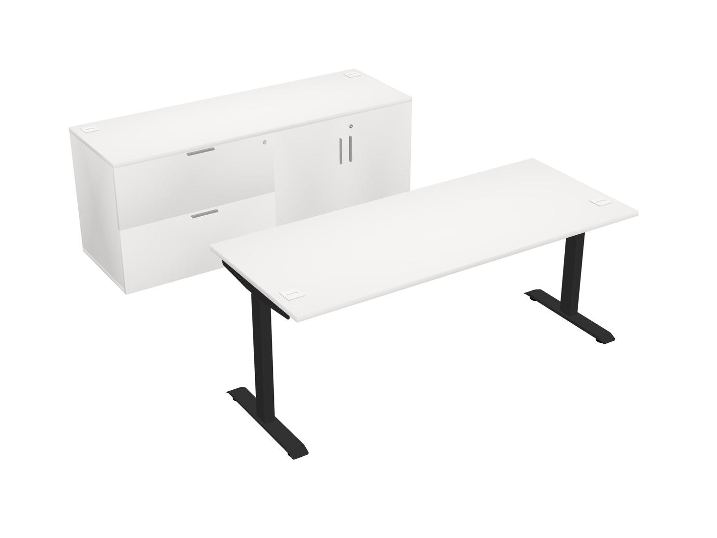 White Parallel Dual Motor Electric Height Adjustable Desk With Credenza - Commercial Grade