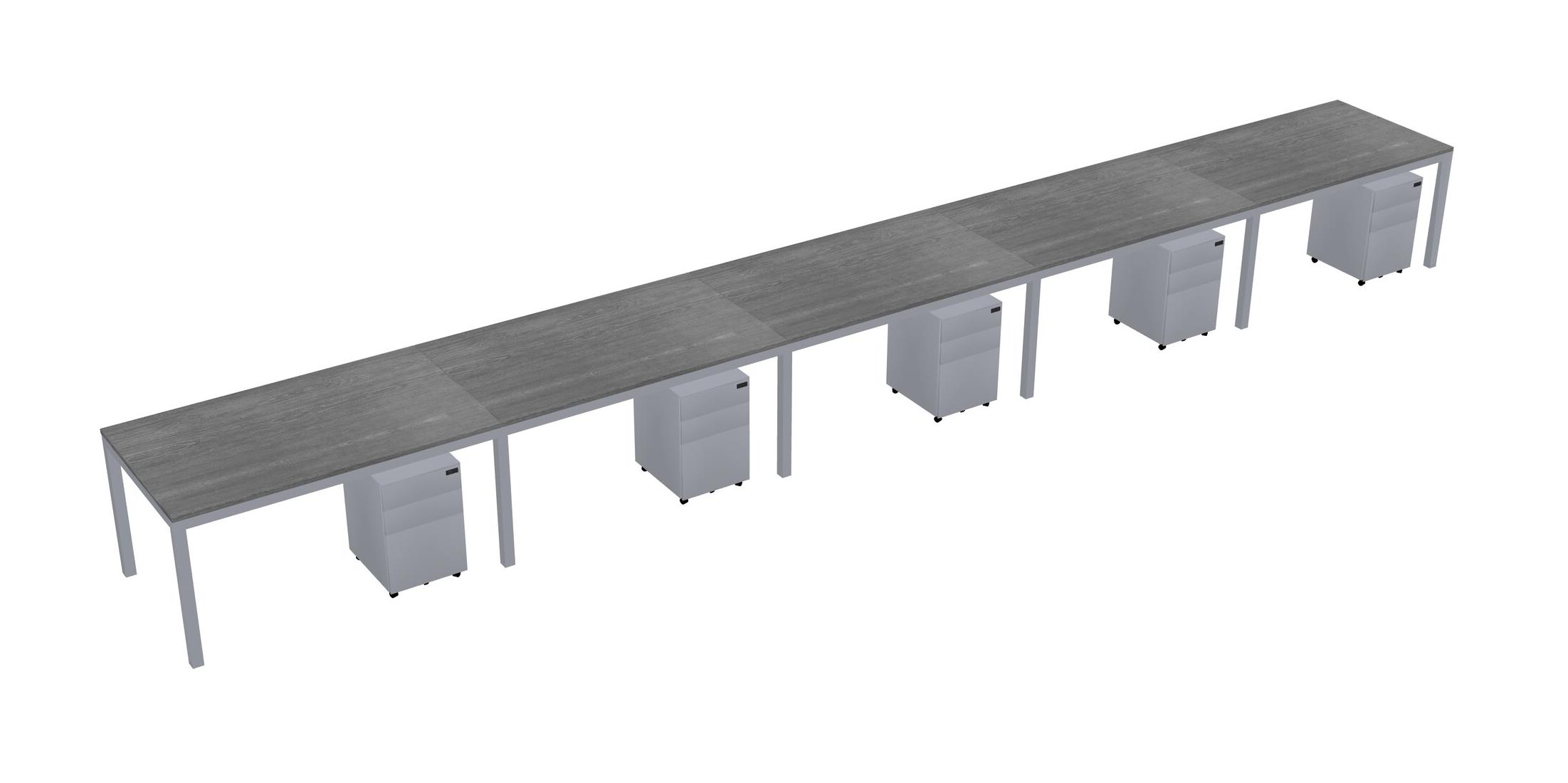 Grey Rectangular Office Desk With Metal Mobile Drawers For 5 Persons