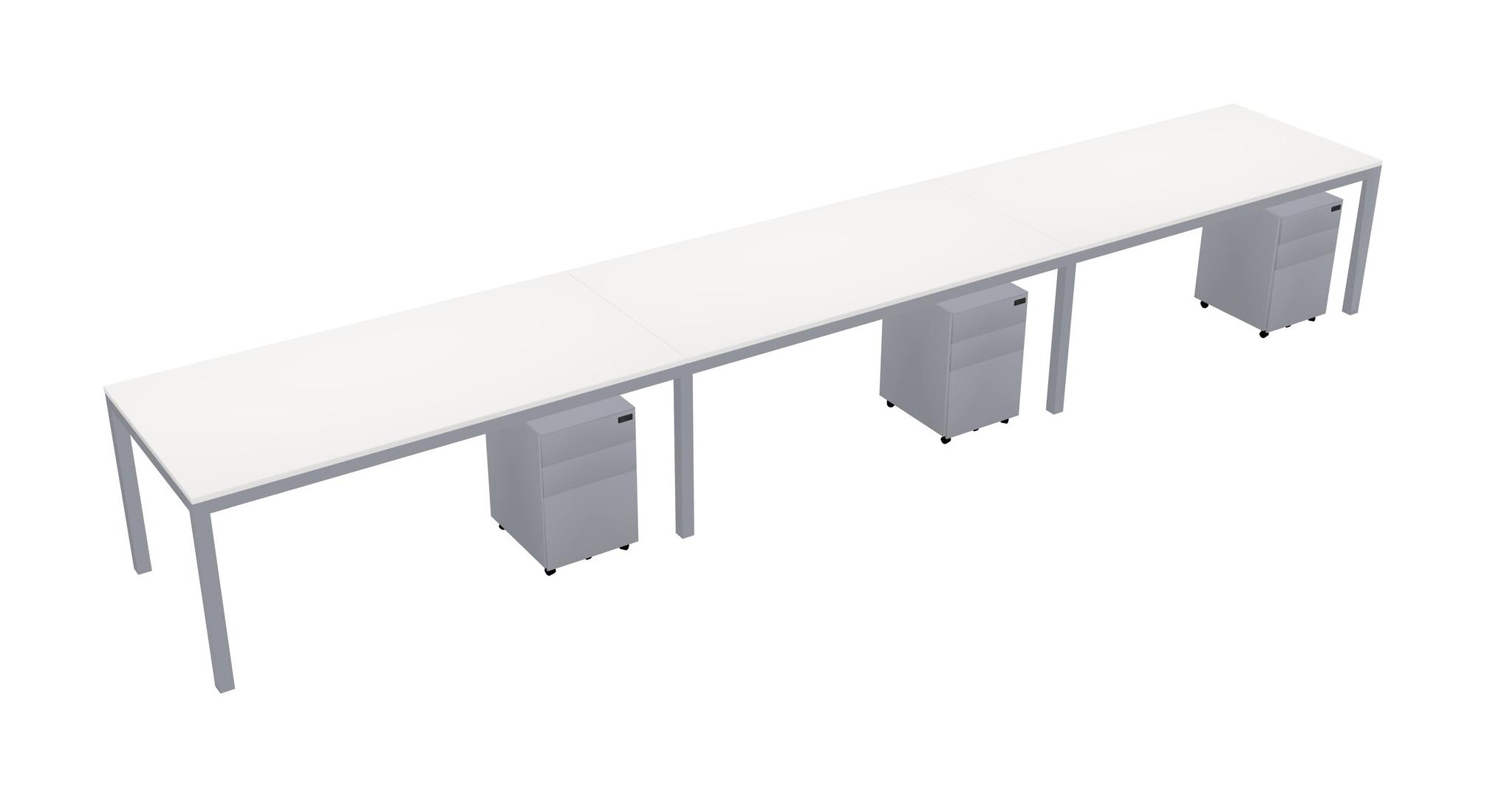 White Rectangular Office Desk With Metal Mobile Drawers For 3 Persons