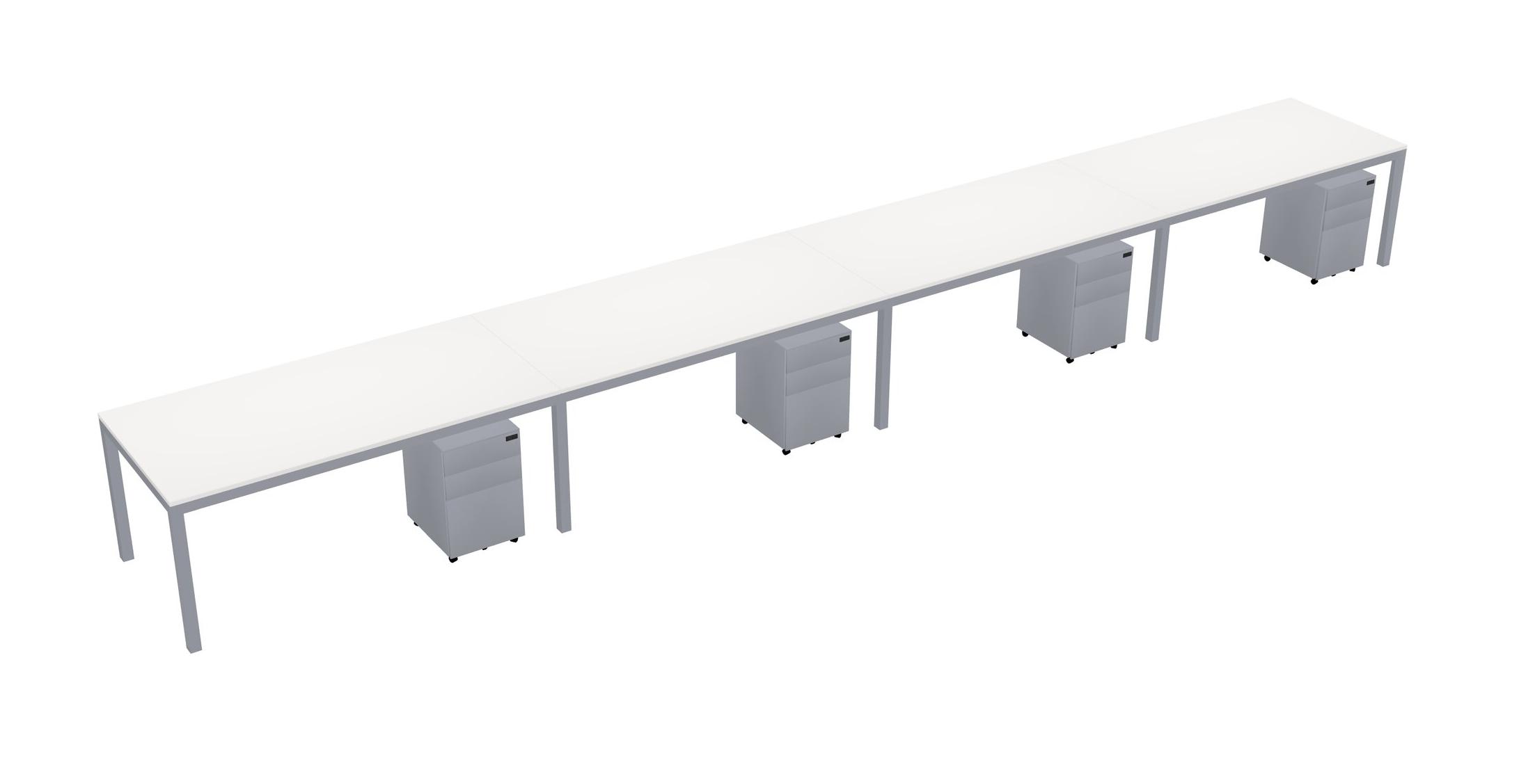 White Rectangular Office Desk With Metal Mobile Drawers For 4 Persons