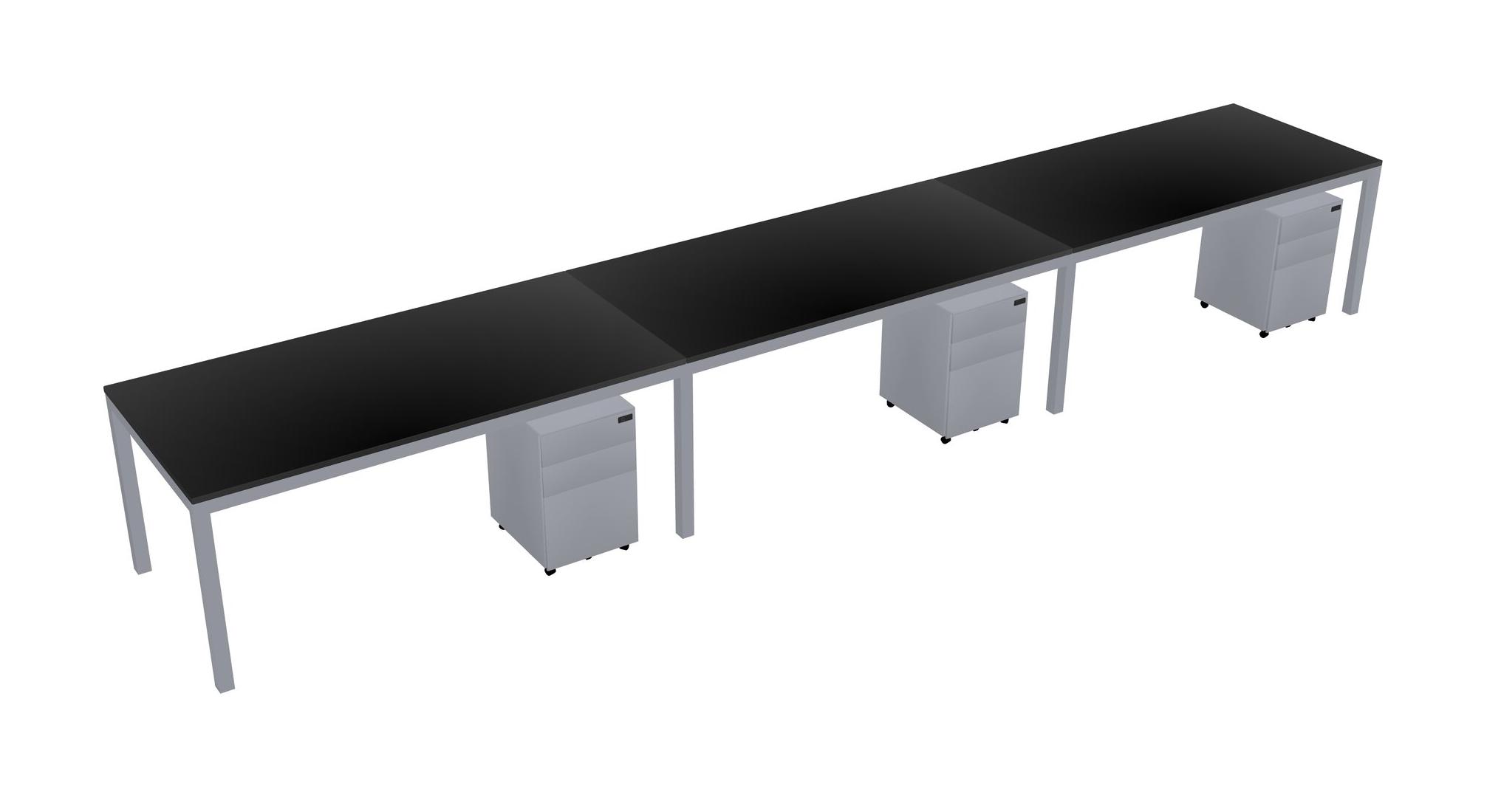 Black Rectangular Office Desk With Metal Mobile Drawers For 3 Persons