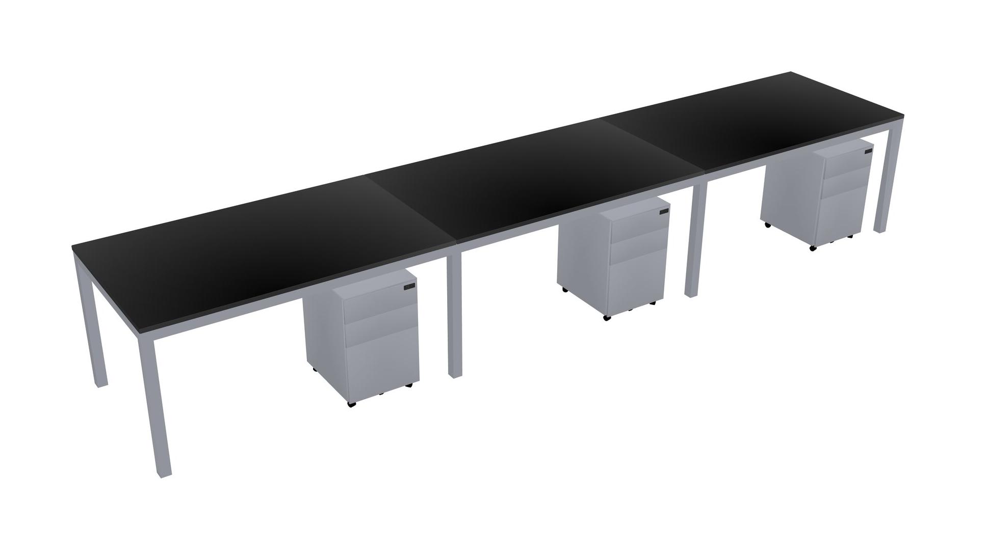Black Rectangular Office Desk With Metal Mobile Drawers For 3 Persons
