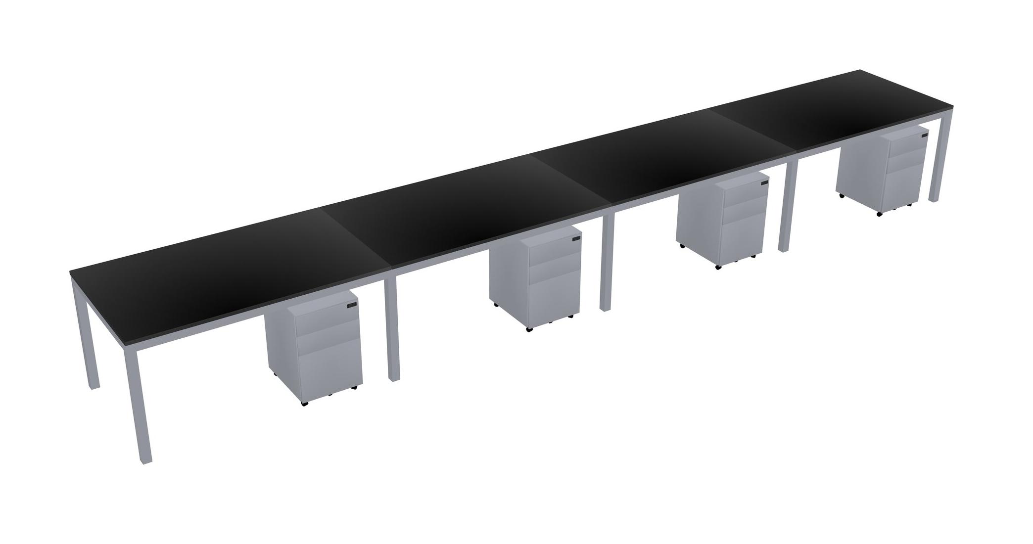 Black Rectangular Office Desk With Metal Mobile Drawers For 4 Persons
