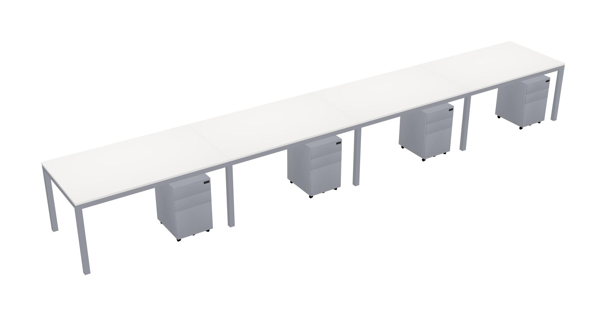 White Rectangular Office Desk With Metal Mobile Drawers For 4 Persons