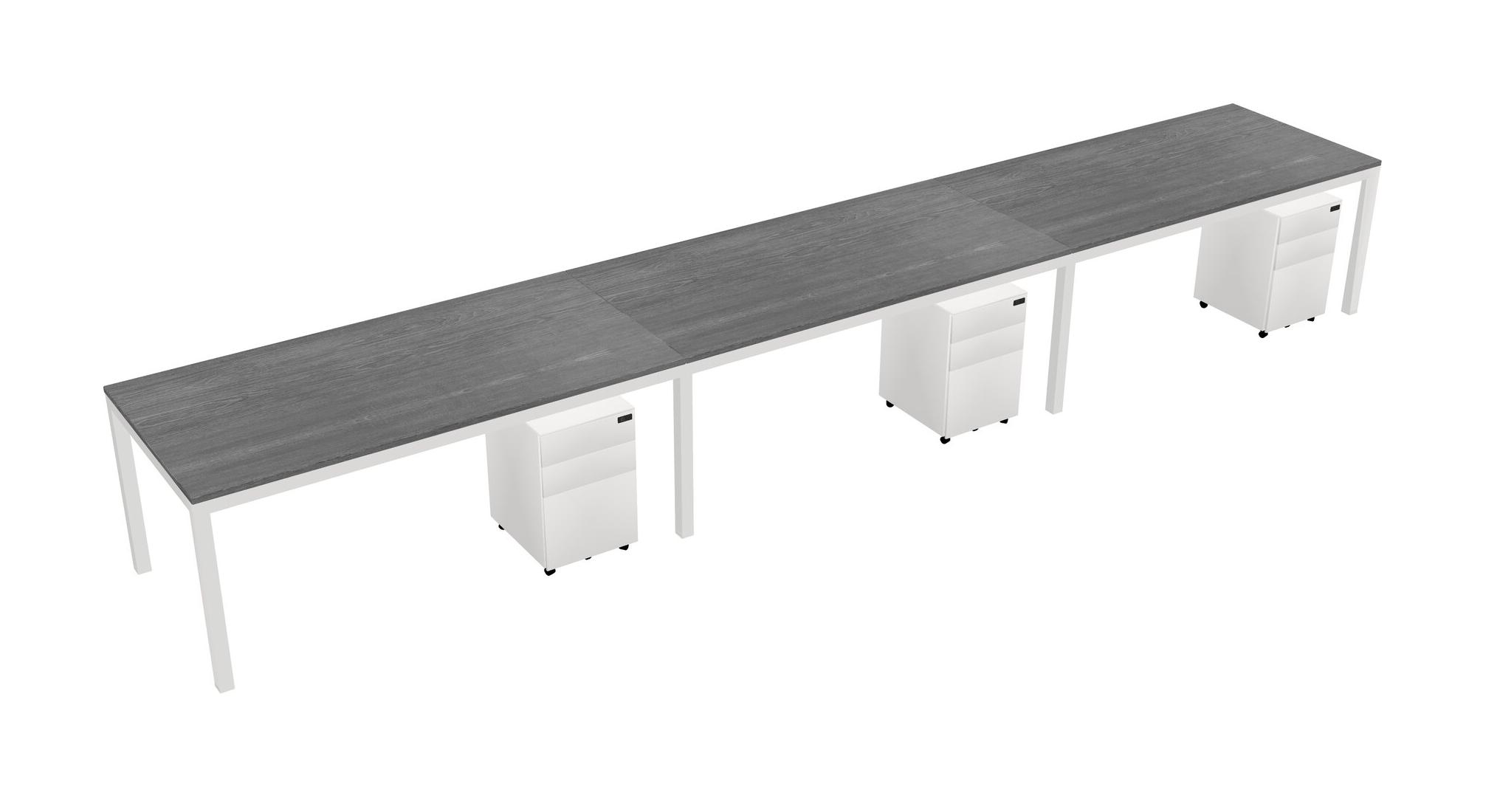 Grey Rectangular Office Desk With Metal Mobile Drawers For 3 Persons