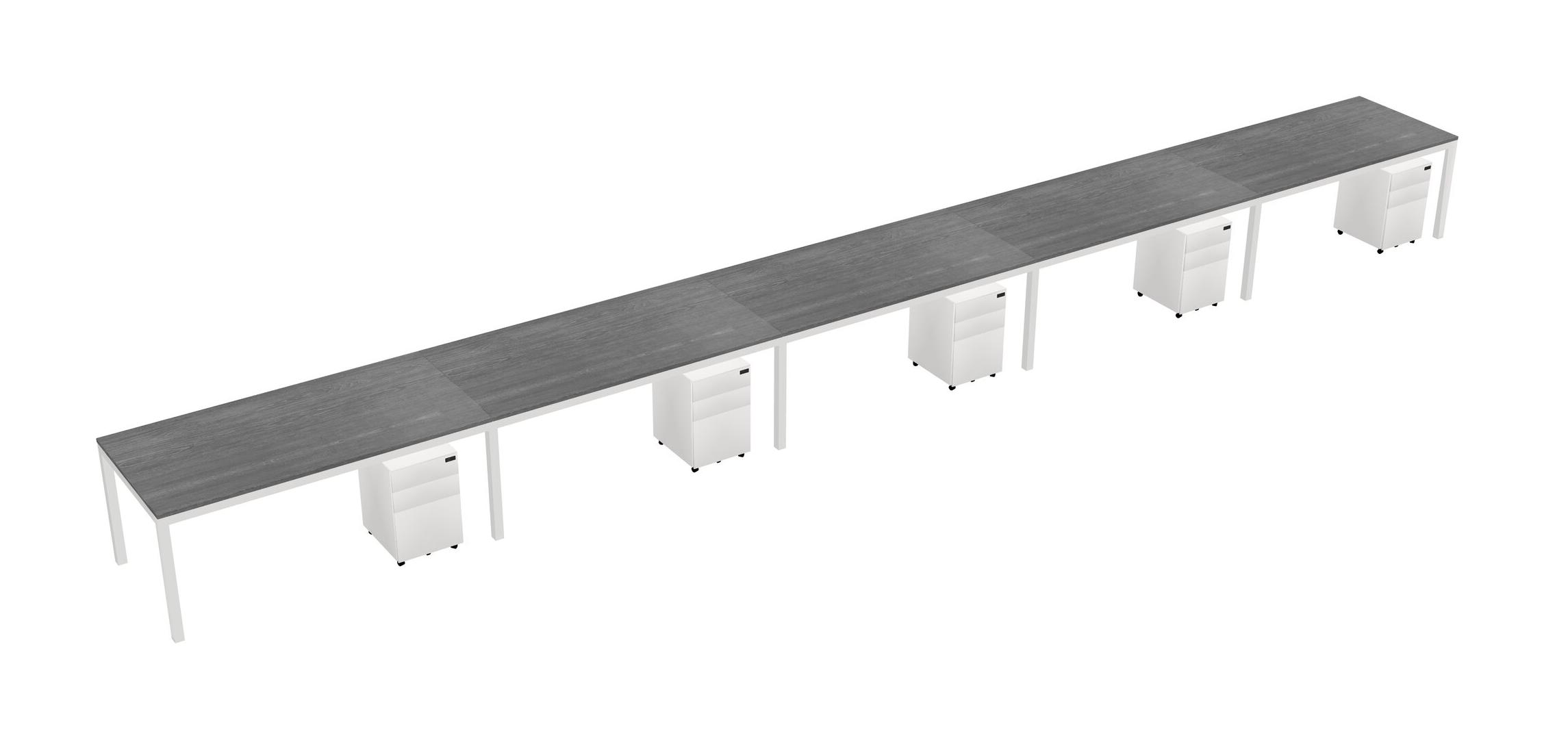 Grey Rectangular Office Desk With Metal Mobile Drawers For 5 Persons