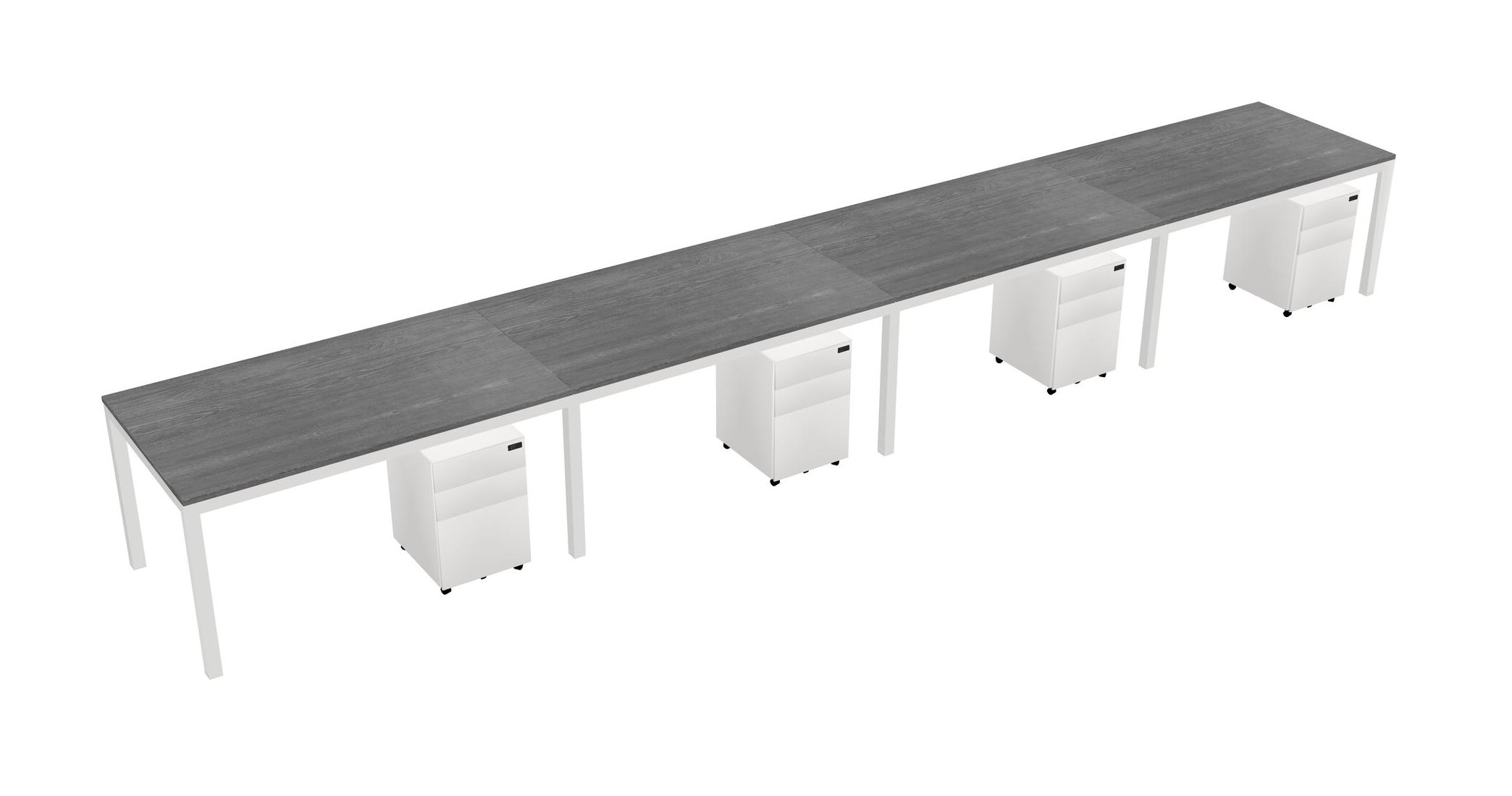 Grey Rectangular Office Desk With Metal Mobile Drawers For 4 Persons