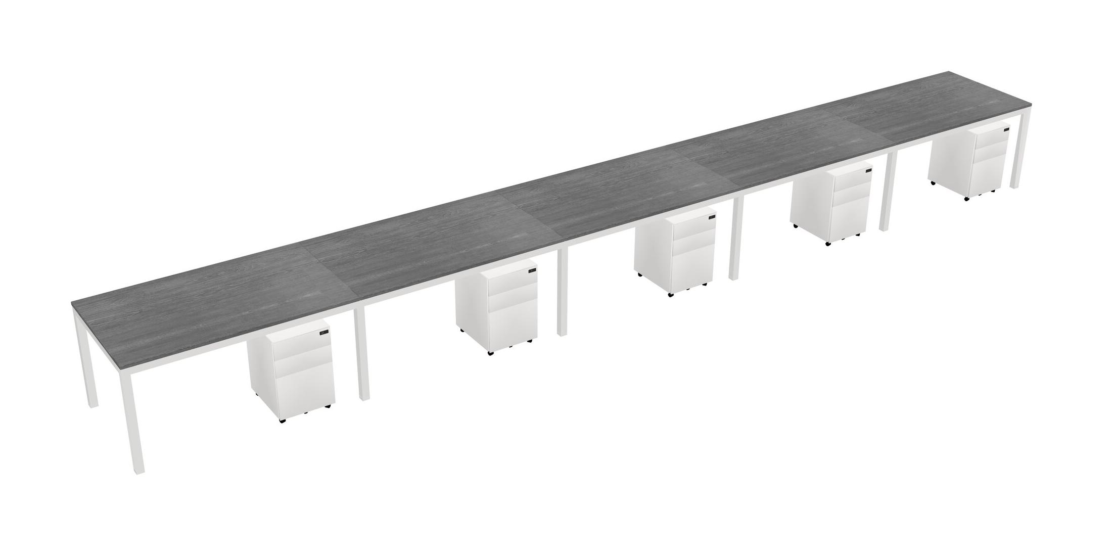 Grey Rectangular Office Desk With Metal Mobile Drawers For 5 Persons