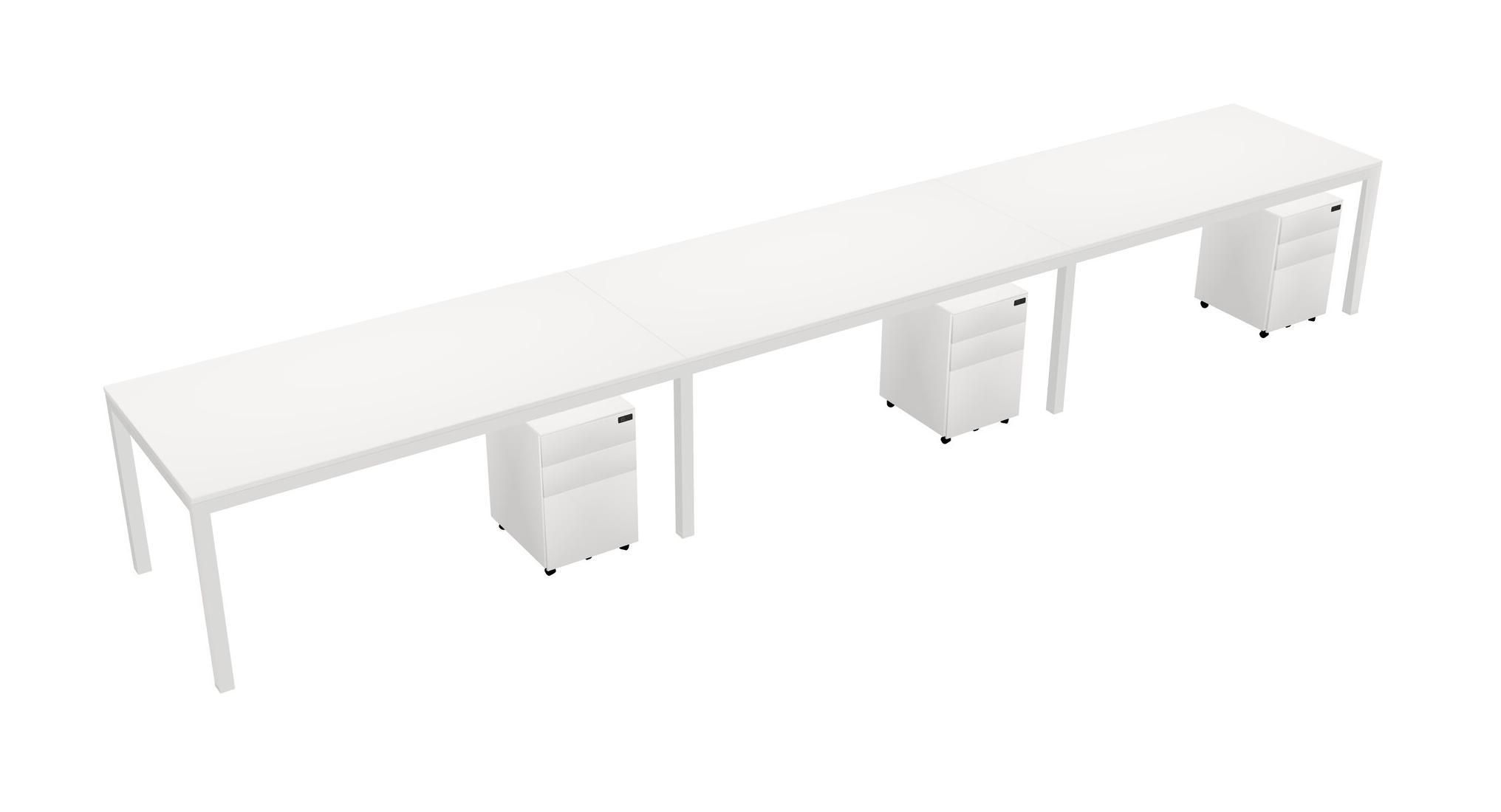 White Rectangular Office Desk With Metal Mobile Drawers For 3 Persons