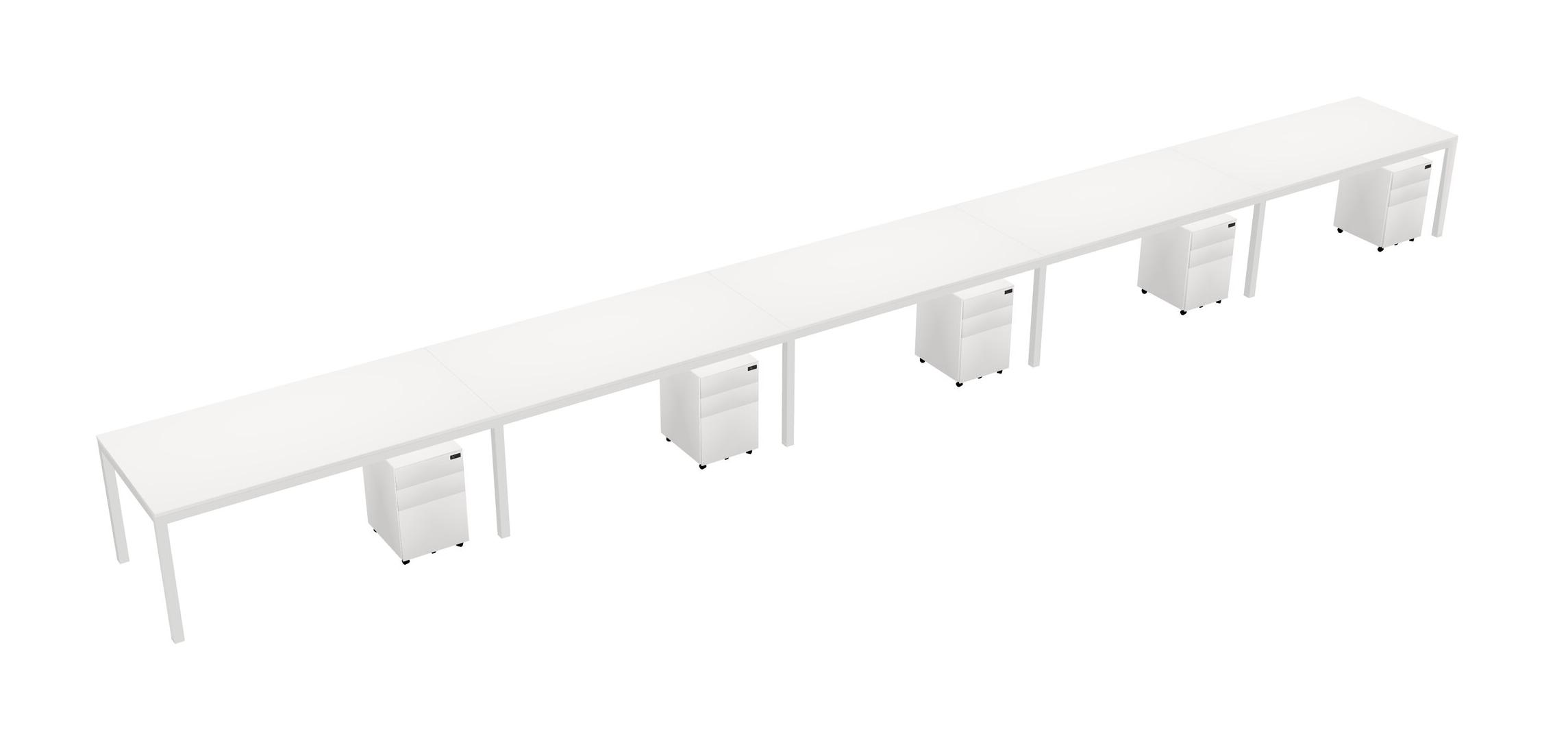 White Rectangular Office Desk With Metal Mobile Drawers For 5 Persons