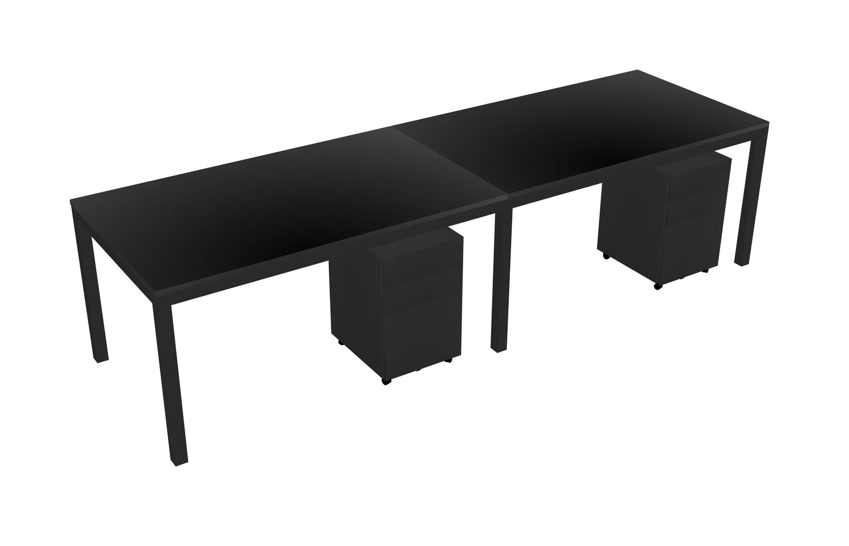 Black Rectangular Office Desk With Metal Mobile Drawers For 2 Persons