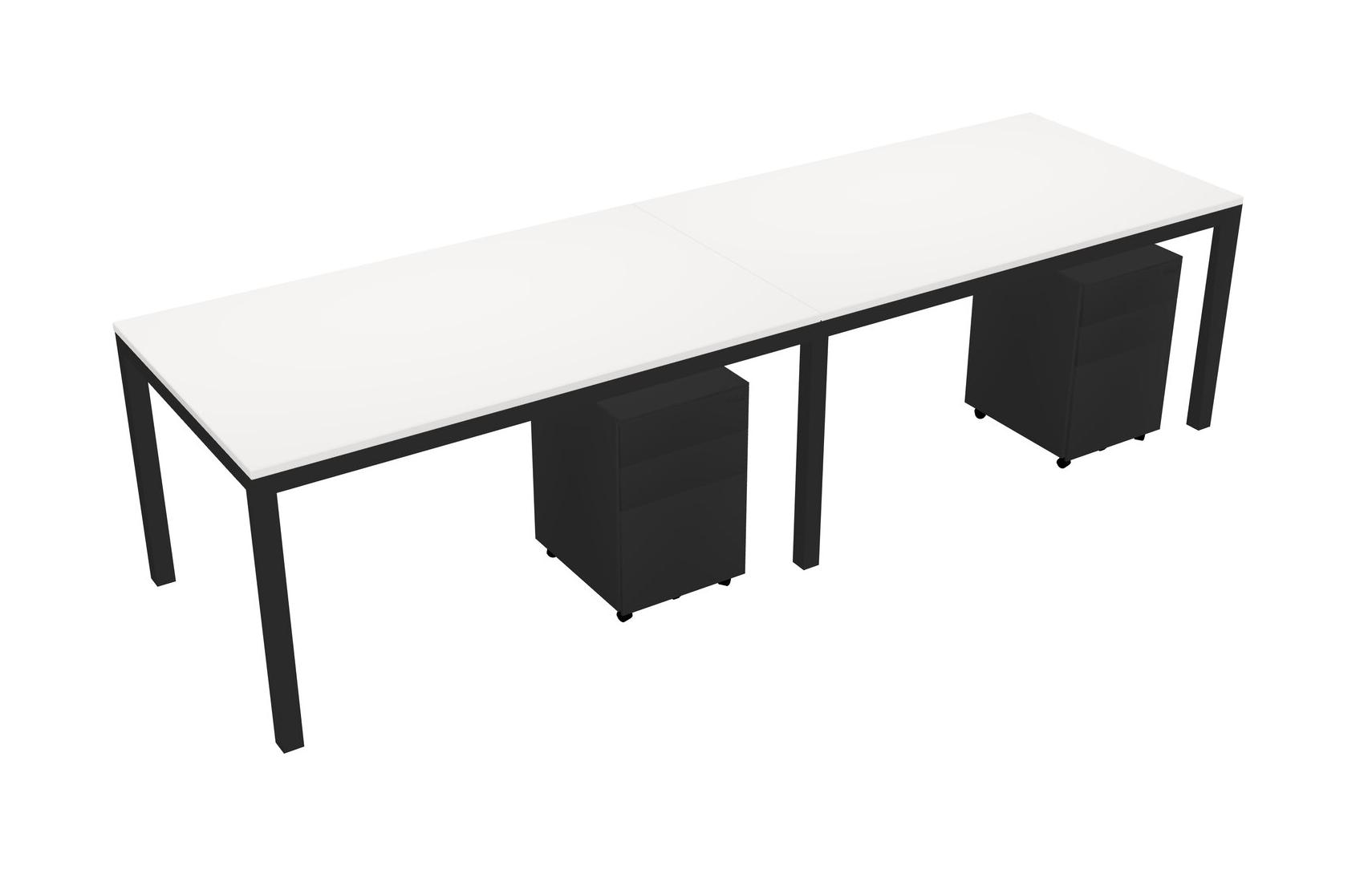 White Rectangular Office Desk With Metal Mobile Drawers For 2 Persons