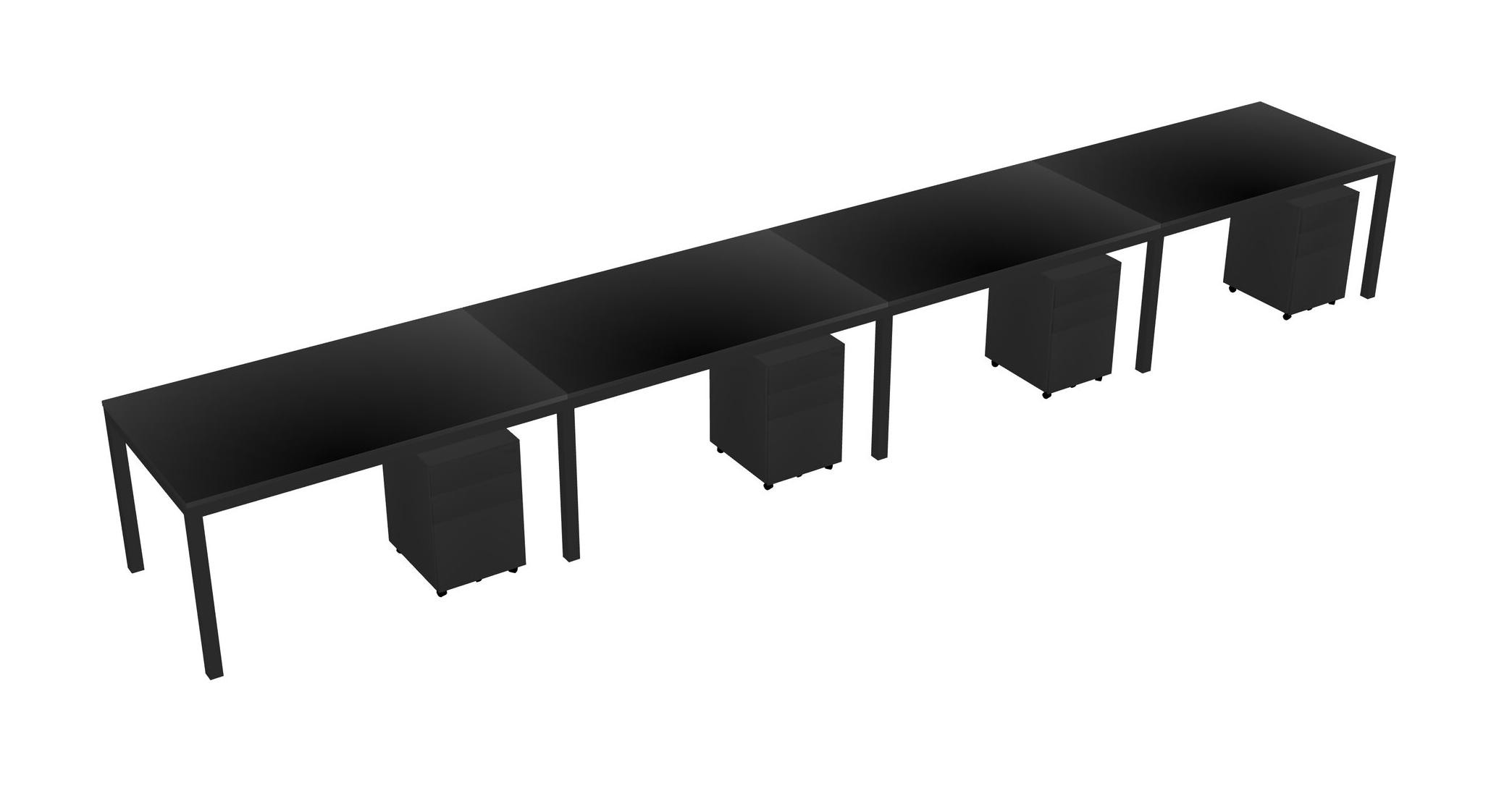 Black Rectangular Office Desk With Metal Mobile Drawers For 4 Persons