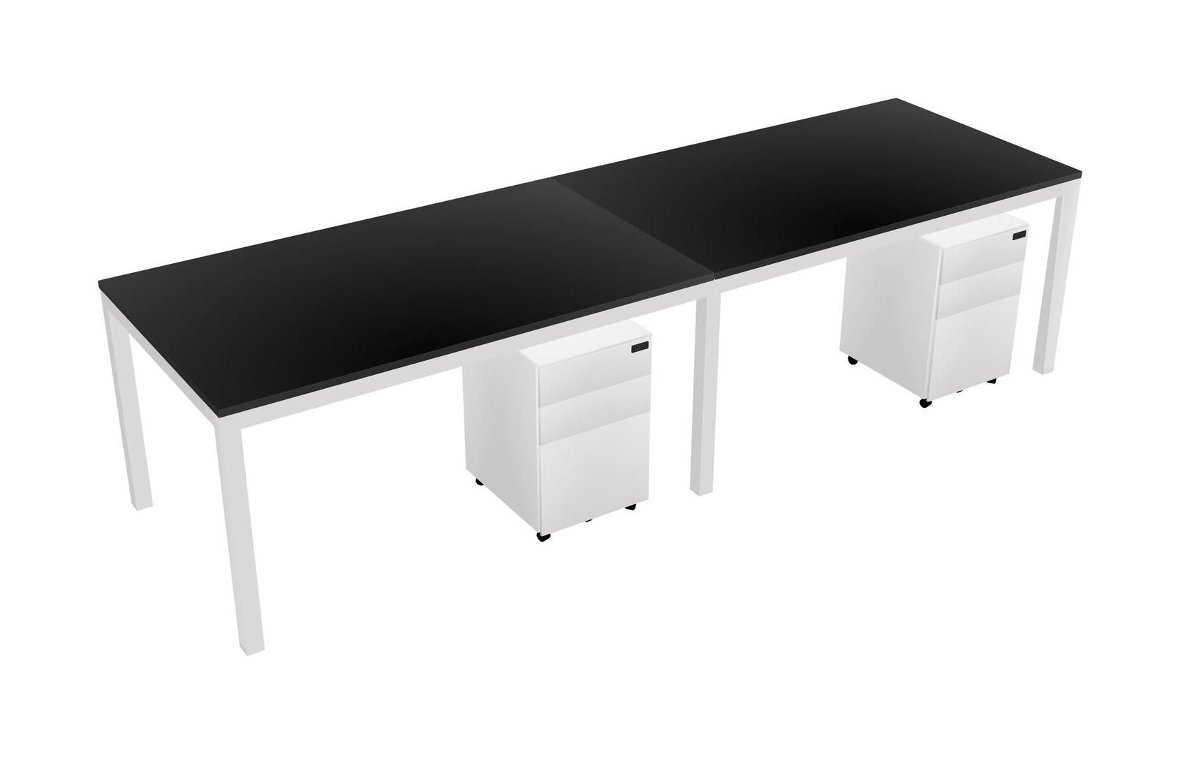 Black Rectangular Office Desk With Metal Mobile Drawers For 2 Persons