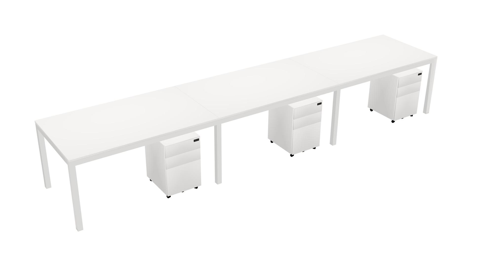 White Rectangular Office Desk With Metal Mobile Drawers For 3 Persons