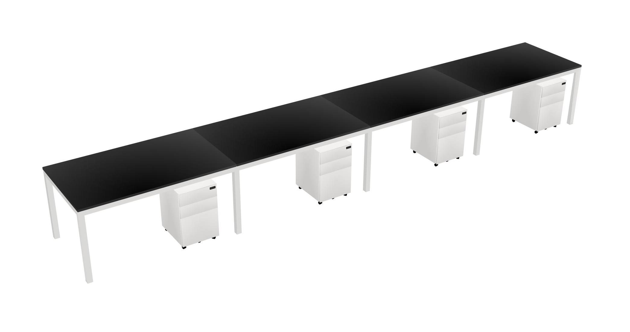Black Rectangular Office Desk With Metal Mobile Drawers For 4 Persons