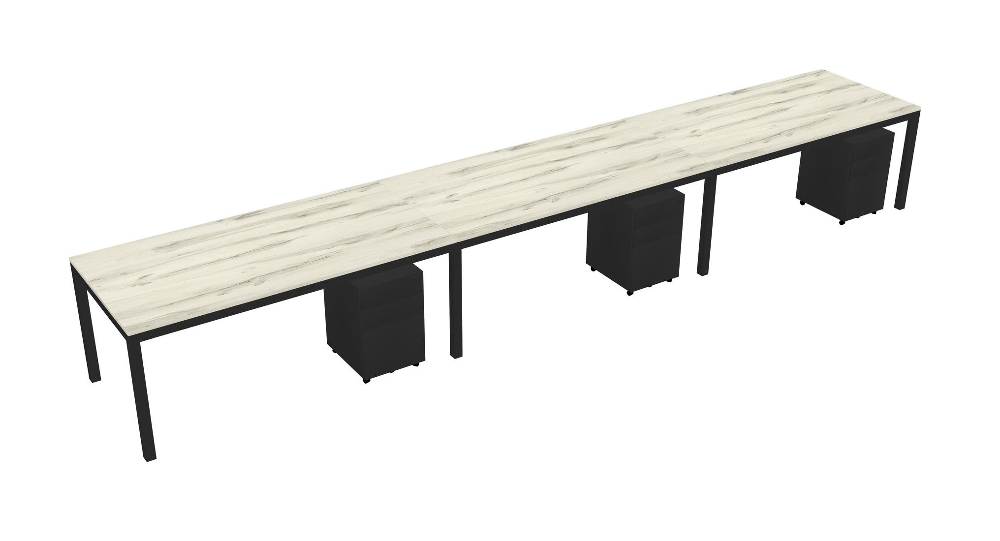 Heinne Holz Rectangular Office Desk With Metal Mobile Drawers For 3 Persons
