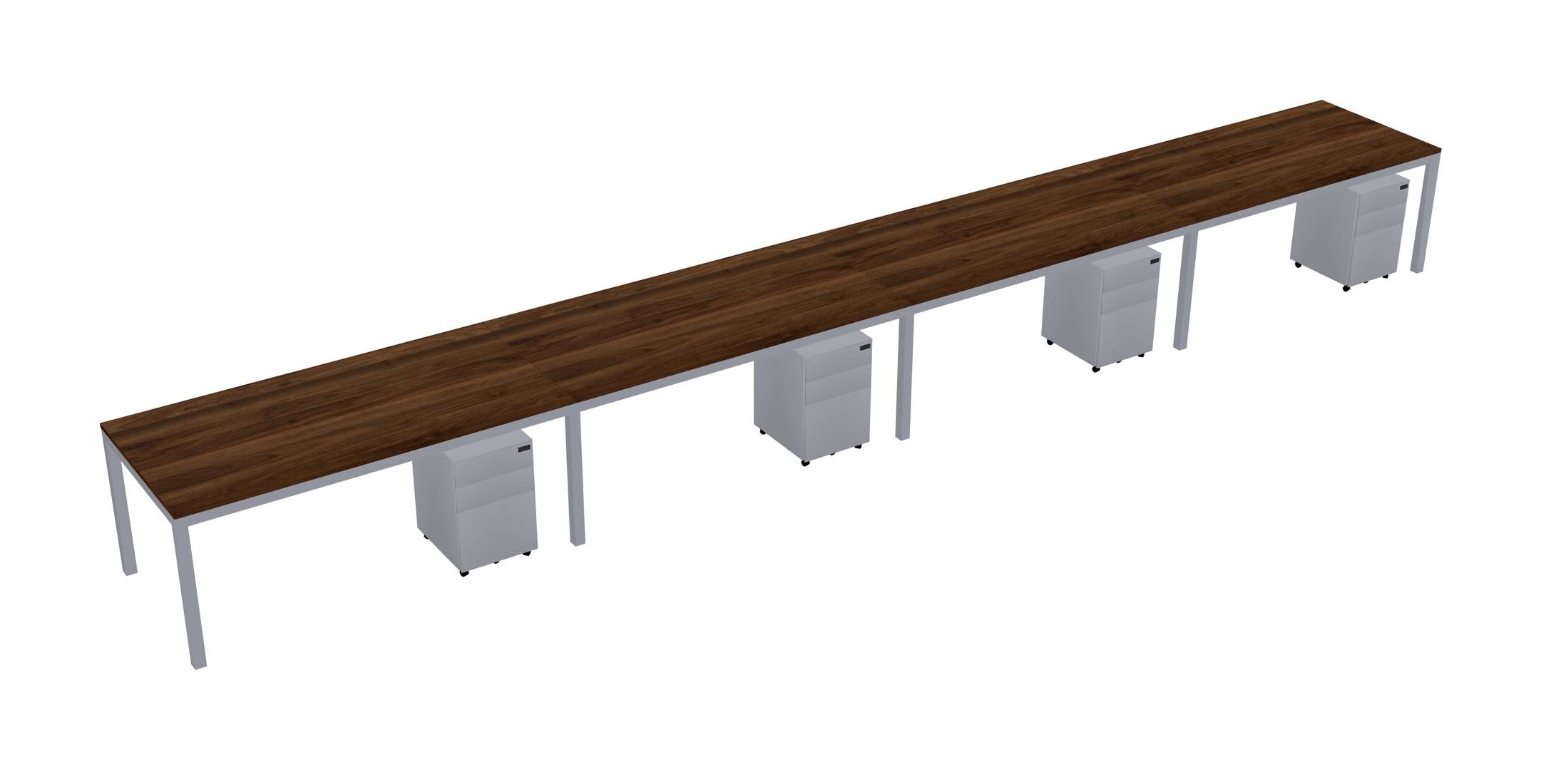 Columbia Walnut Rectangular Office Desk With Metal Mobile Drawers For 4 Persons