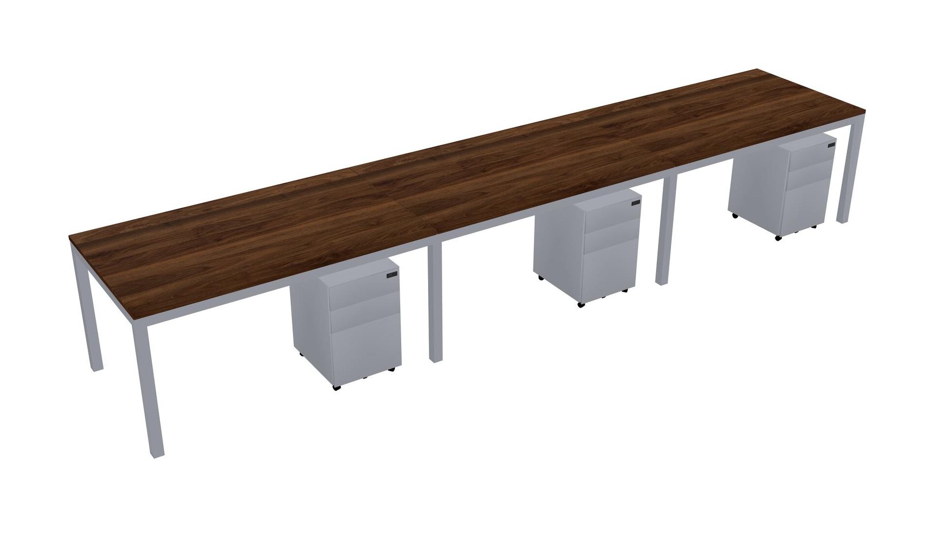 Columbia Walnut Rectangular Office Desk With Metal Mobile Drawers For 3 Persons