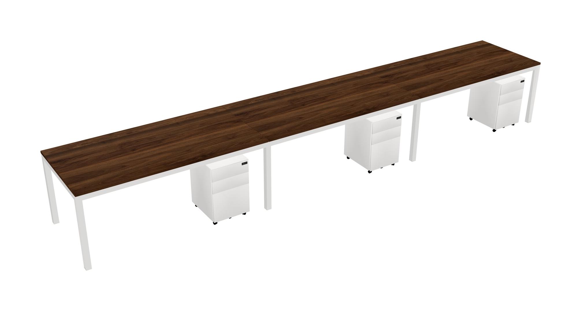 Columbia Walnut Rectangular Office Desk With Metal Mobile Drawers For 3 Persons