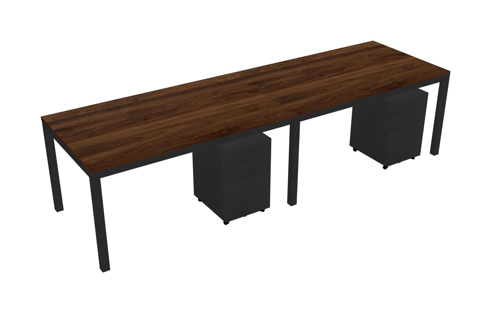 Columbia Walnut Rectangular Office Desk With Metal Mobile Drawers For 2 Persons