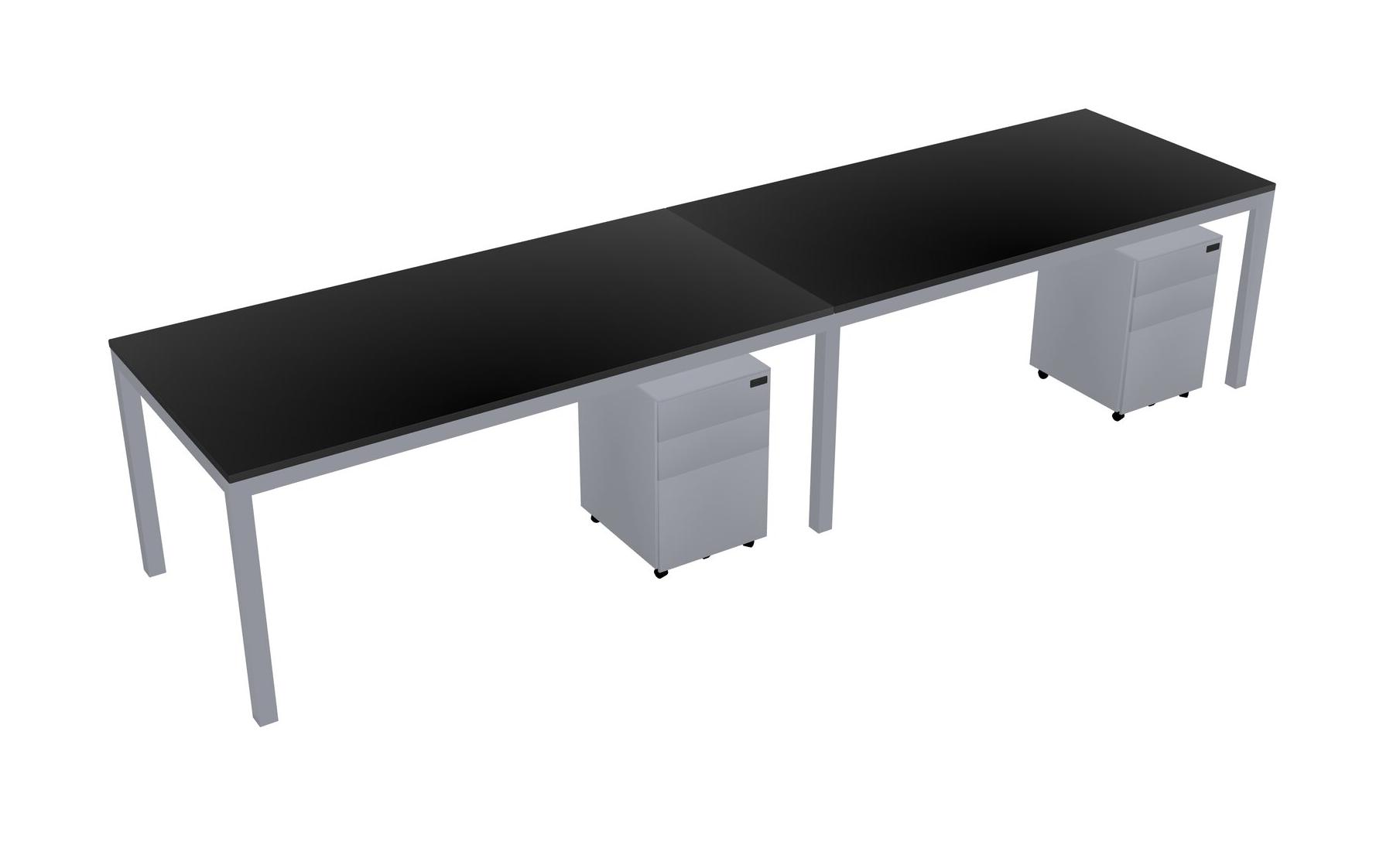 Black Rectangular Office Desk With Metal Mobile Drawers For 2 Persons