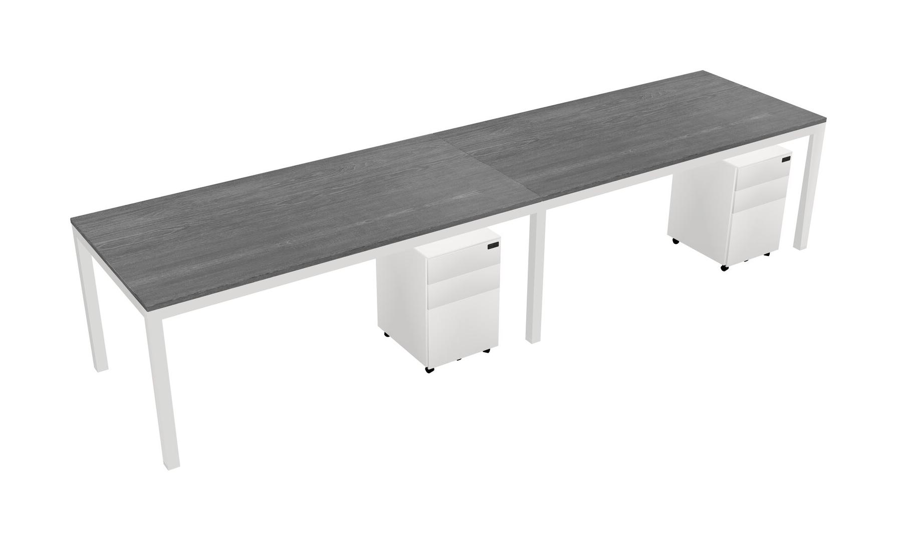 Grey Rectangular Office Desk With Metal Mobile Drawers For 2 Persons