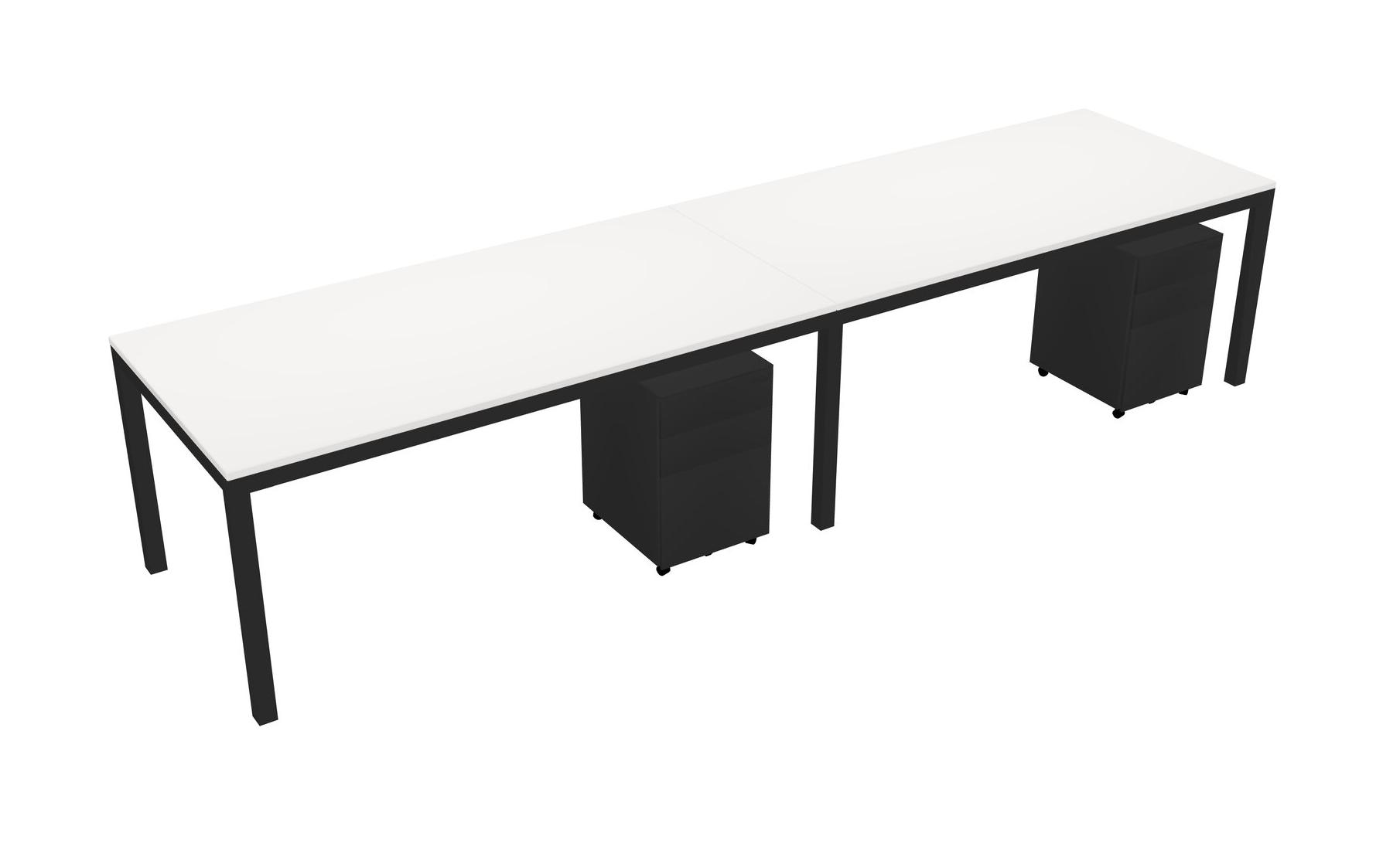 White Rectangular Office Desk With Metal Mobile Drawers For 2 Persons