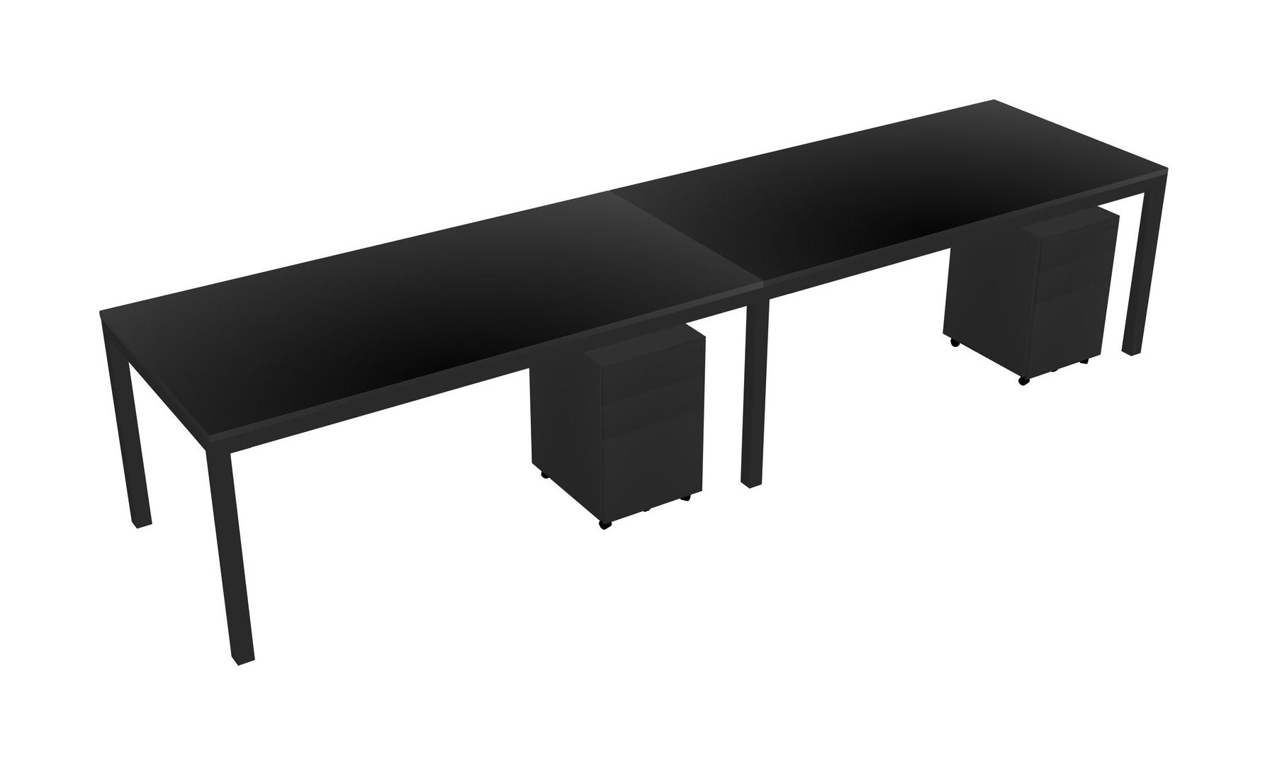 Black Rectangular Office Desk With Metal Mobile Drawers For 2 Persons
