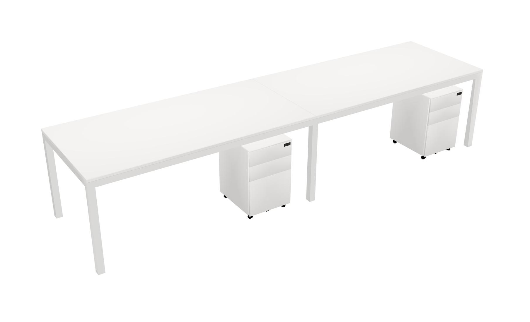 White Rectangular Office Desk With Metal Mobile Drawers For 2 Persons