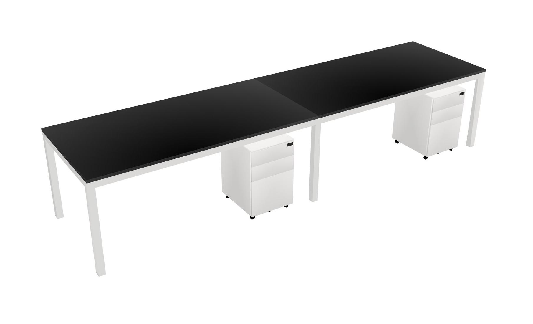 Black Rectangular Office Desk With Metal Mobile Drawers For 2 Persons