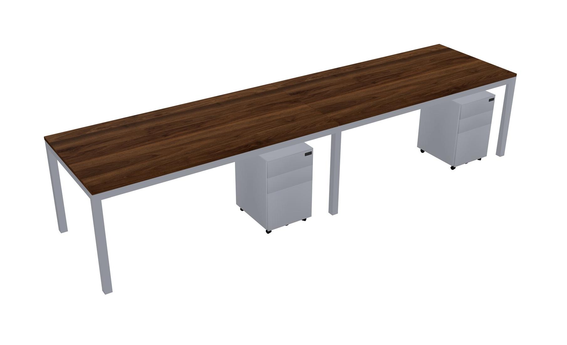 Columbia Walnut Rectangular Office Desk With Metal Mobile Drawers For 2 Persons