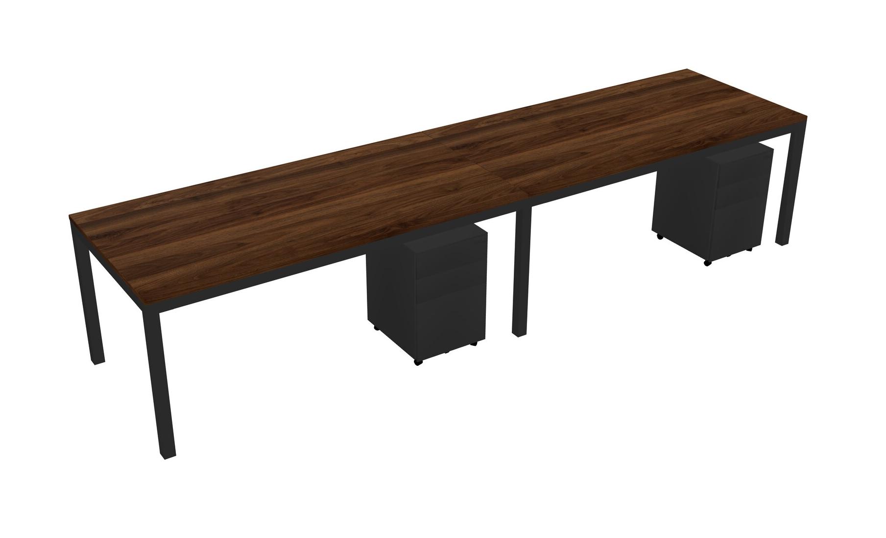 Columbia Walnut Rectangular Office Desk With Metal Mobile Drawers For 2 Persons
