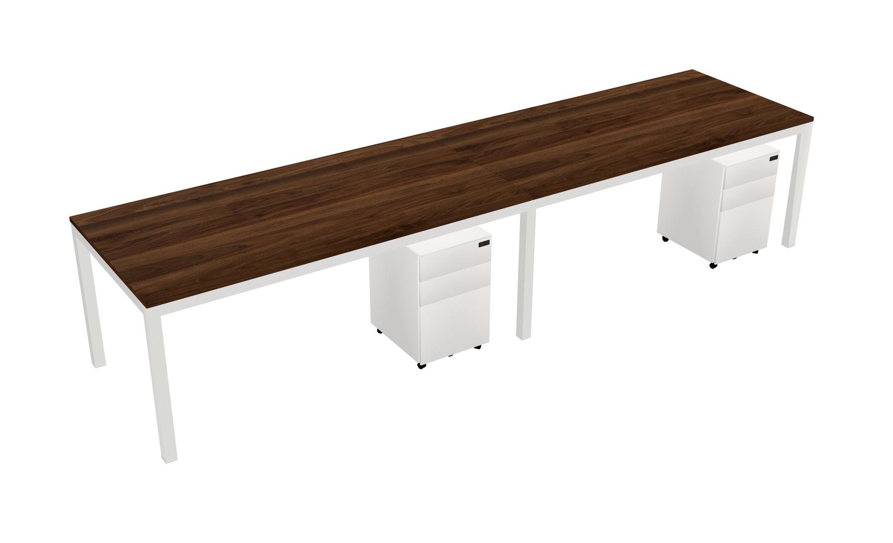 Columbia Walnut Rectangular Office Desk With Metal Mobile Drawers For 2 Persons