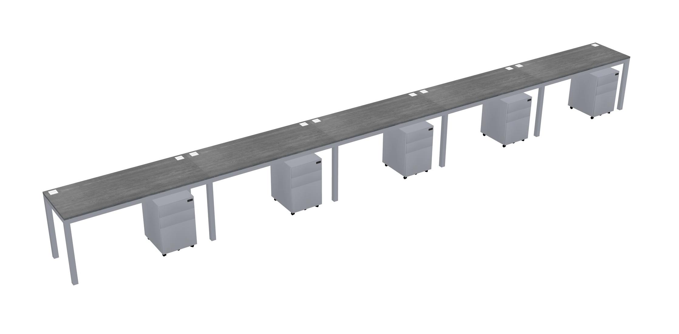 Grey Rectangular Office Desk With Metal Mobile Drawers For 5 Persons