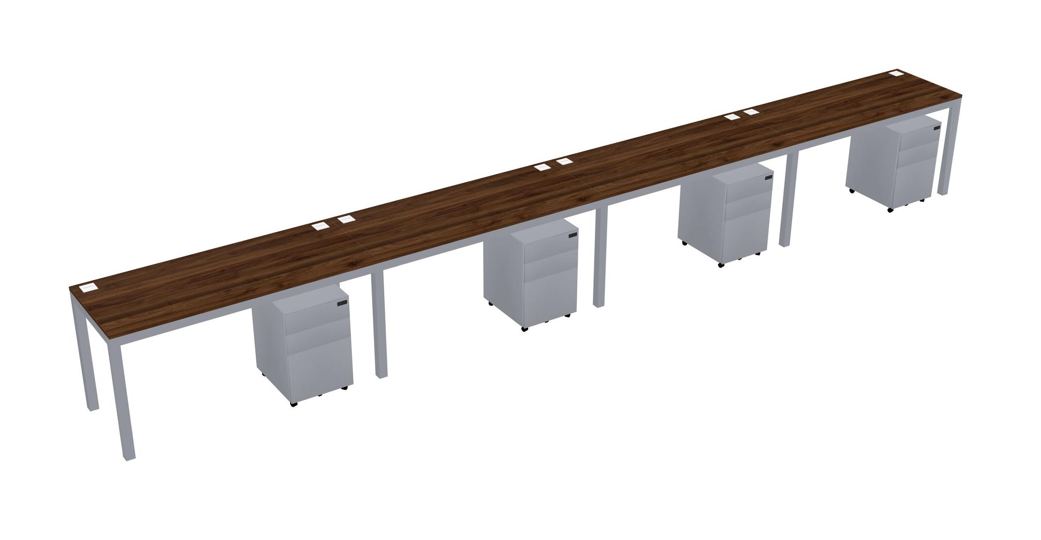 Columbia Walnut Rectangular Office Desk With Metal Mobile Drawers For 4 Persons