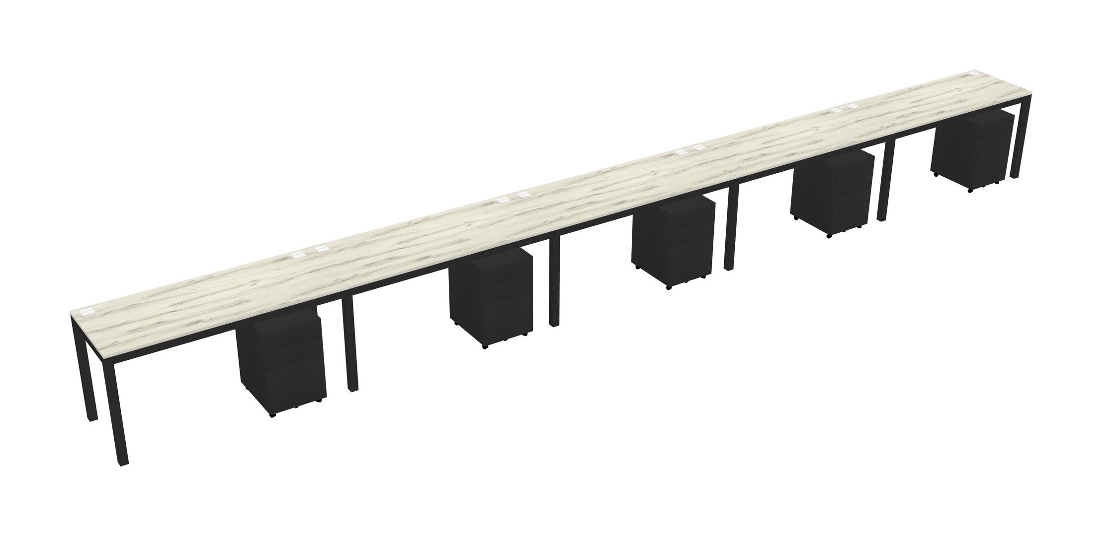 Heinne Holz Rectangular Office Desk With Metal Mobile Drawers For 5 Persons